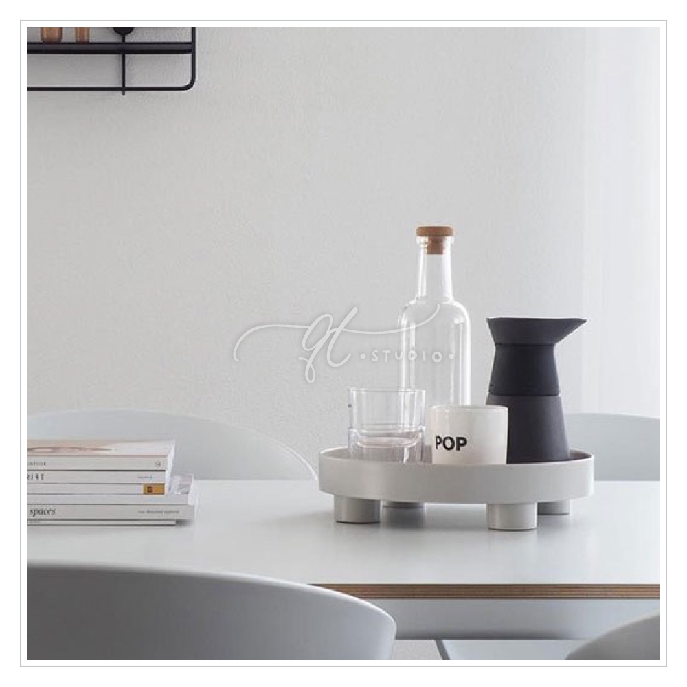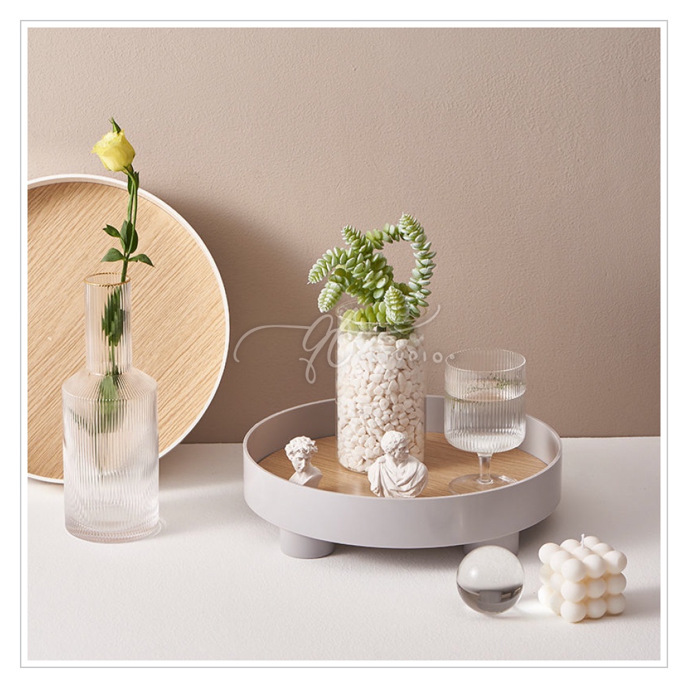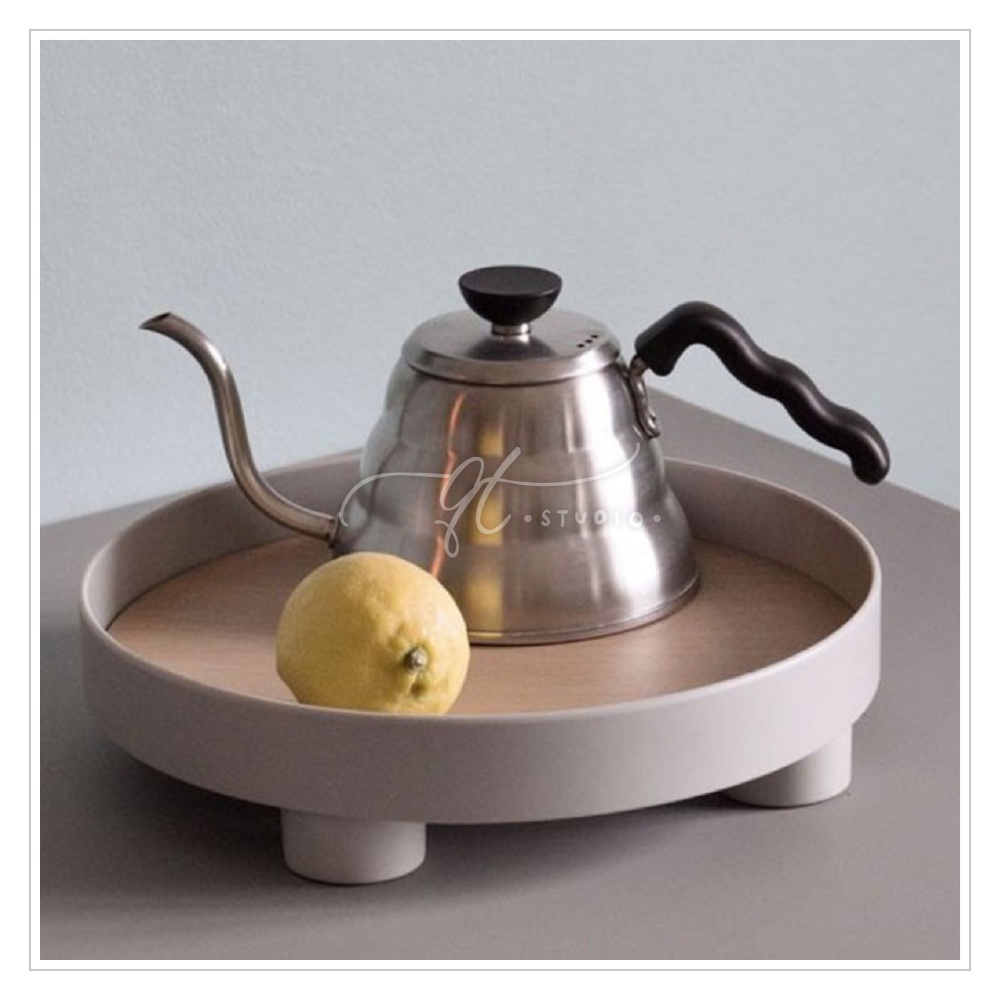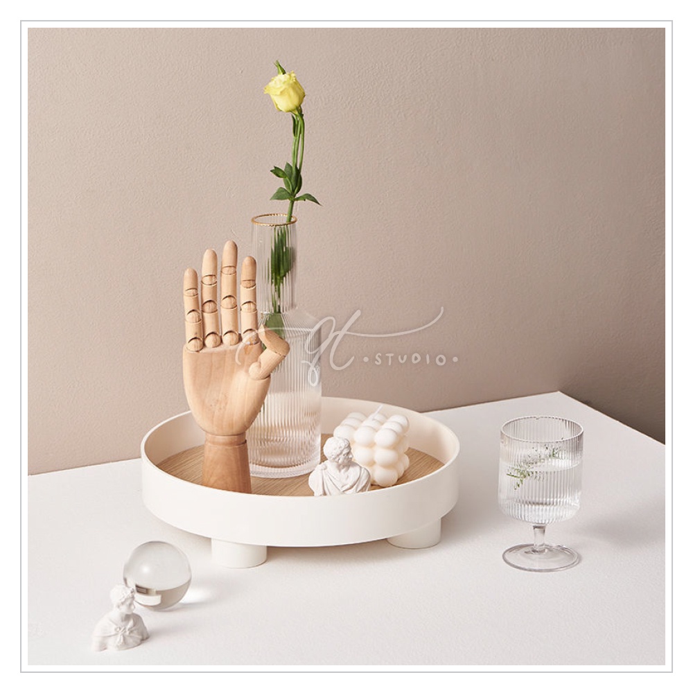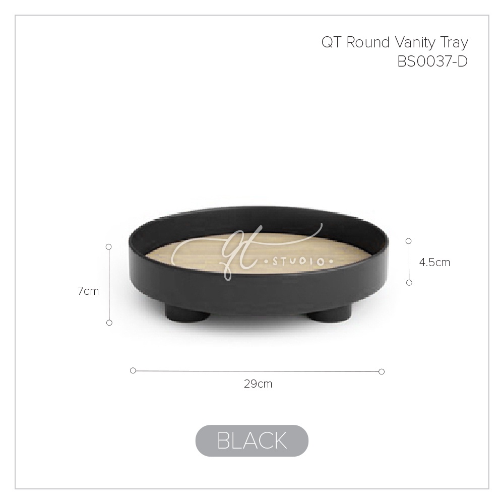 [Ready Stock] Footed Round Vanity Tray Wooden Base / Desk Bathroom Organizer BS0037
