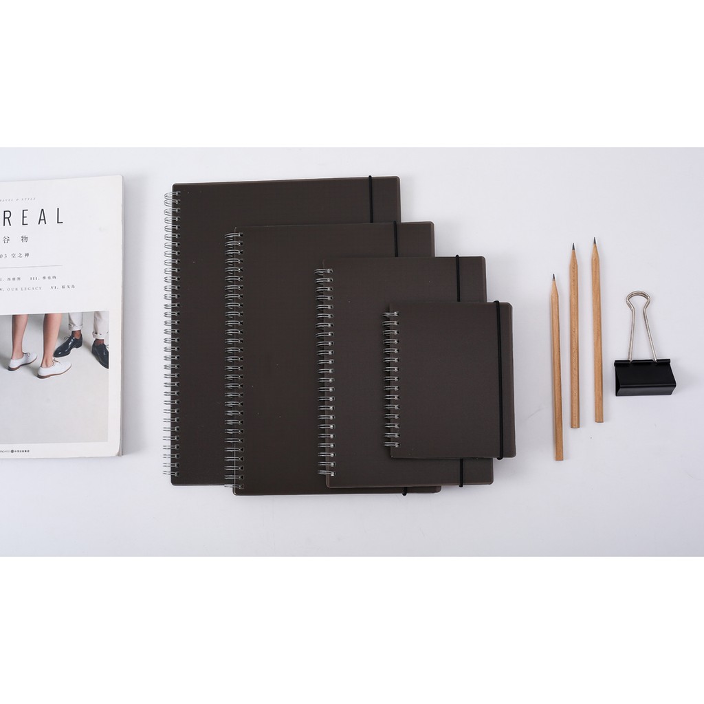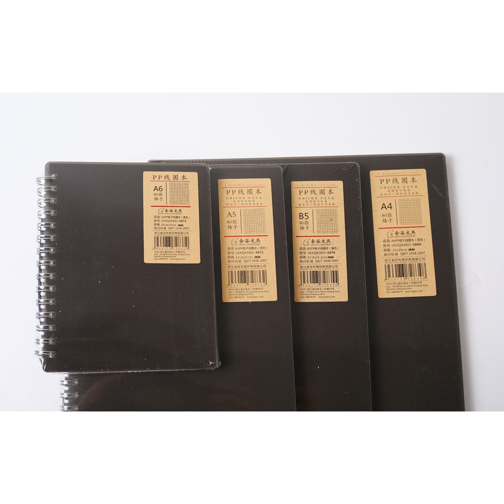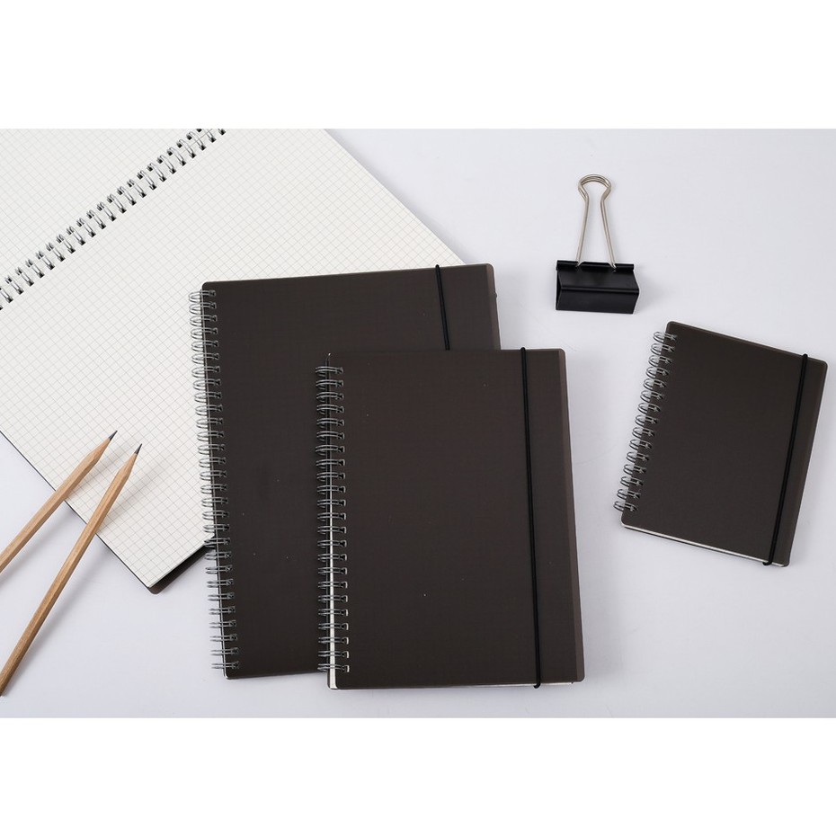 [Ready Stock]Grid Line notebook, Spiral Book, A5 B5 A4 Waterproof cover, Black PP Spiral Wire O Grid Line Notes