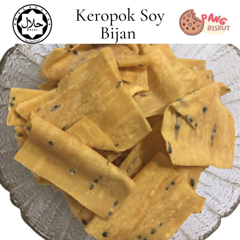 Handmade Keropok Tofu Soy Bijan Hitam Timbang /Beancurd Black Sesame Chip /200g /Halal