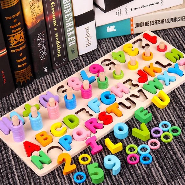 [ Ready Stock ] Kids Early Learning Matching Board/Wooden Matching Board /Alphabet & Number Matching Board/Wooden Board