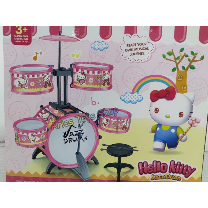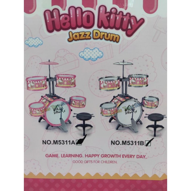 [Ready Stock] Kids Jazz Drum Set Musical Instrument Playset Learning Toys hello kitty