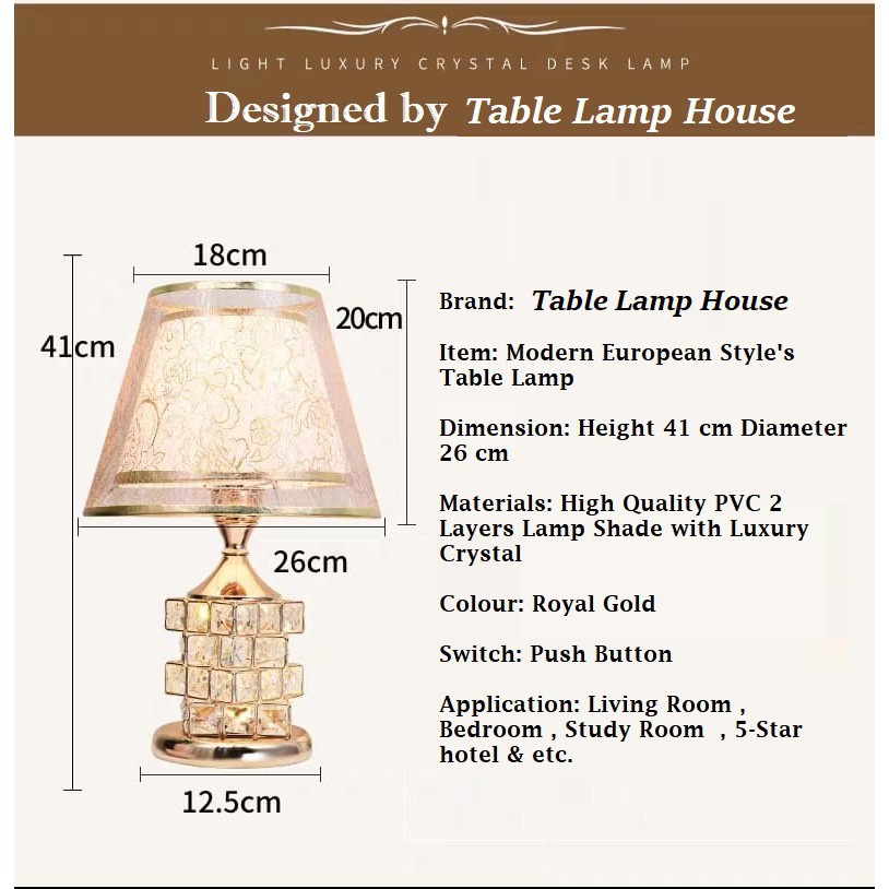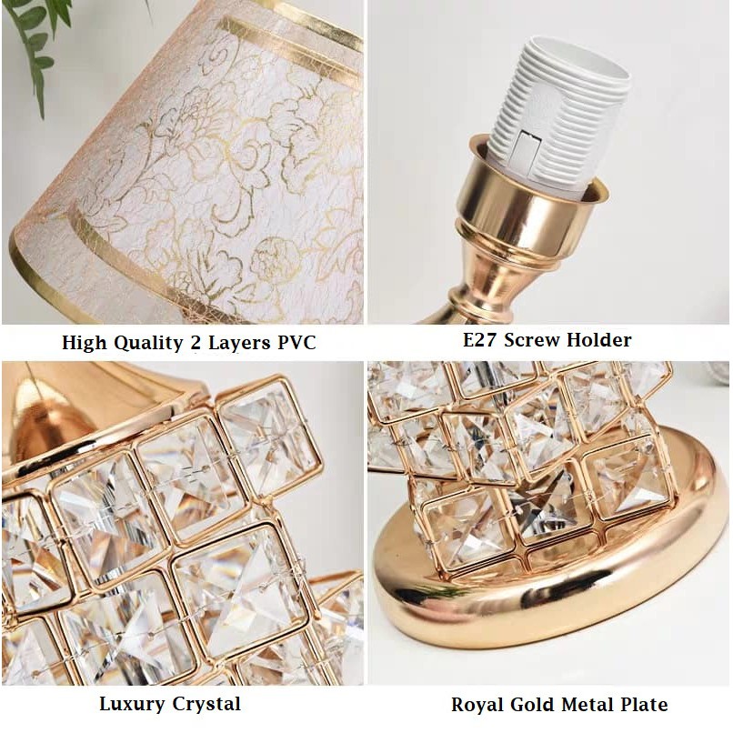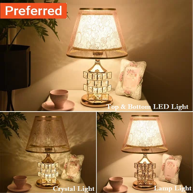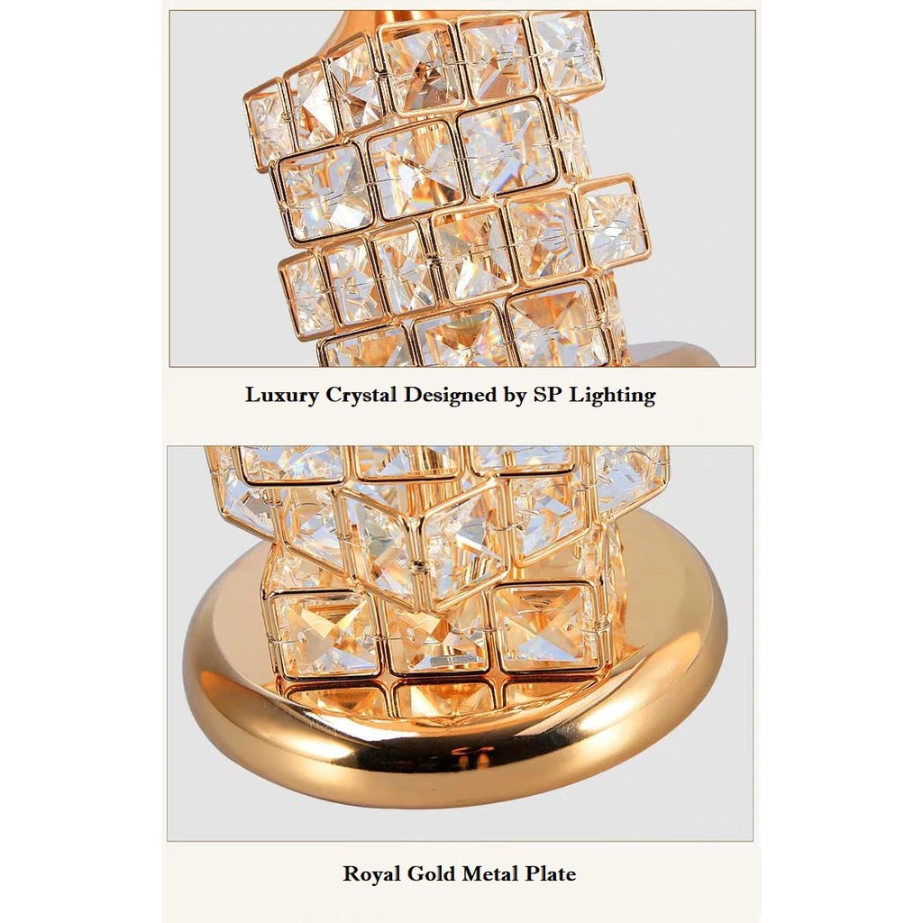 [Ready Stock] Led Design Gold Crystal Bedside Table Lamp Living Room/Lampu Meja dan Hiasan Tepi katil