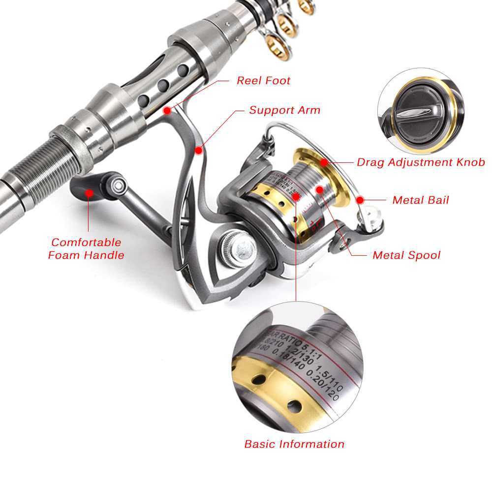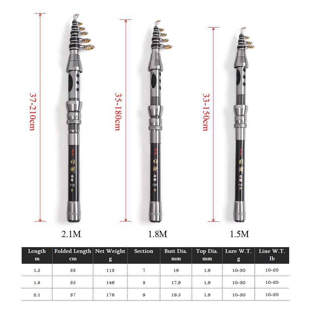 [Ready Stock] Lixada Telescopic Fishing Rod and Reel Combo Full Kit 2.1m (black red)