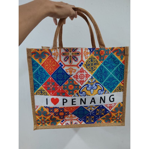[Ready Stock] Melaka & Penang Souvenir Bag Picnic Bag Guni Bag Large Size Tote Bag Canvas Bag