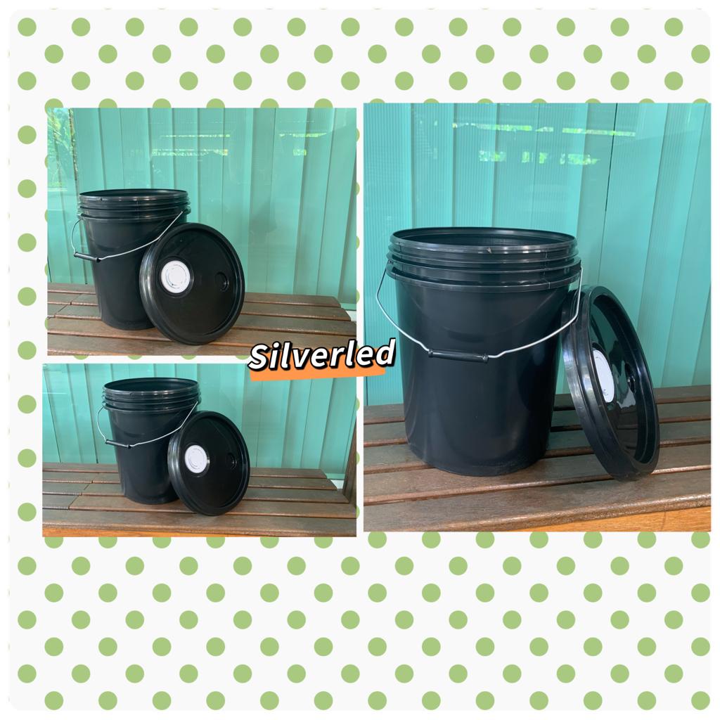 {Ready Stock} NEW 20L Black pail and cover with spout & Strong Handle