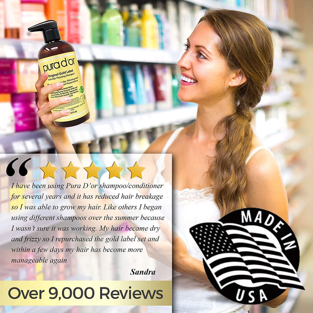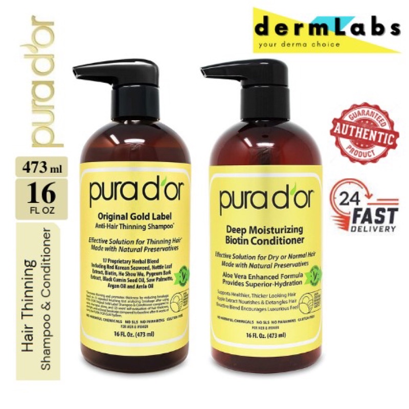[Ready Stock] PURA D'OR/ PURA DOR/ PURADOR Biotin Original Gold Label Anti-Hair Thinning Shampoo / Conditioner 473 ml