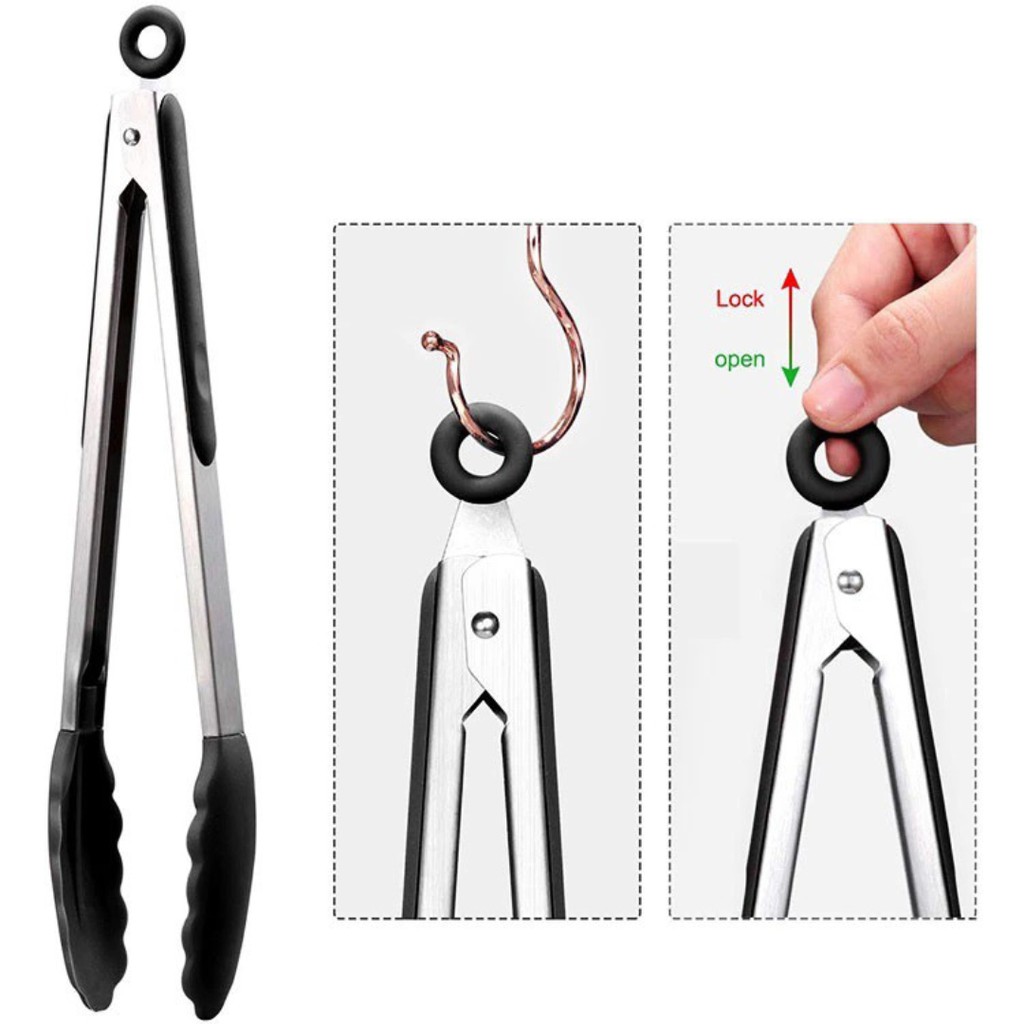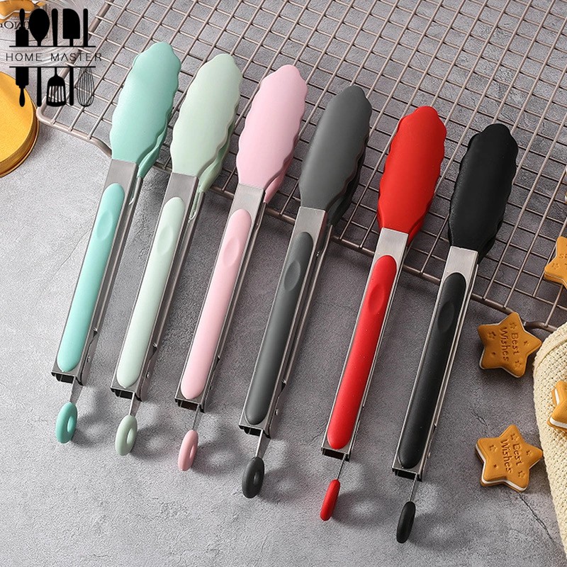 [Ready Stock] Premium Silicone Food Tongs Kitchen Cooking Salad Serving BBQ Tongs Stainless Steel Handle Utensil