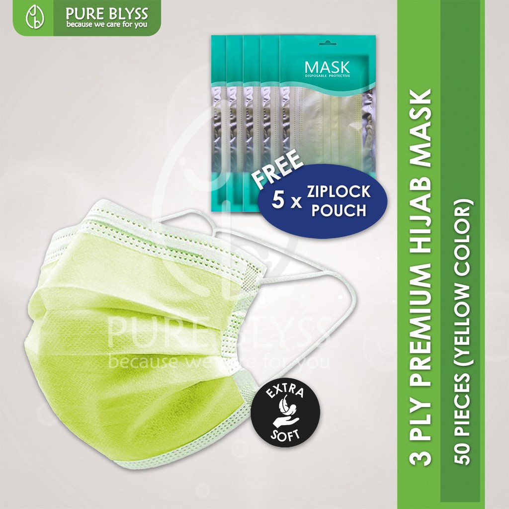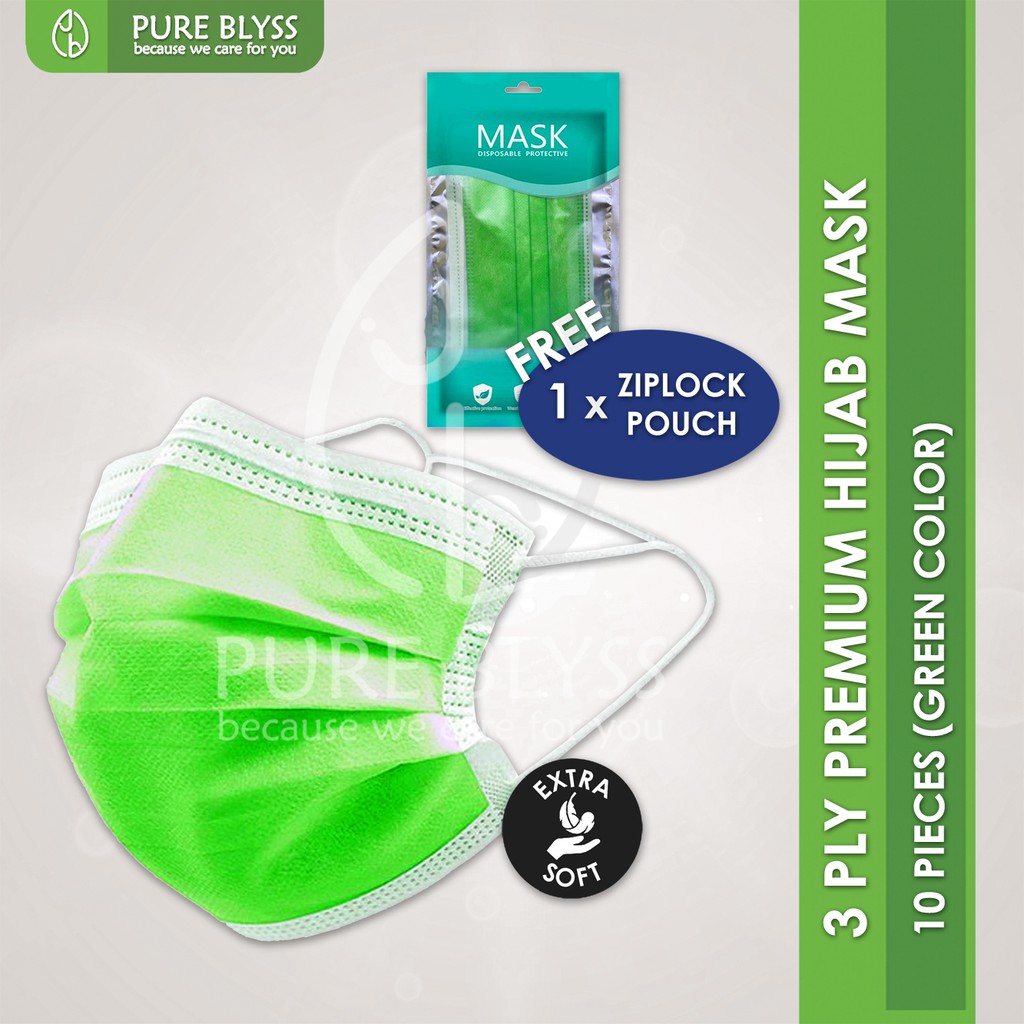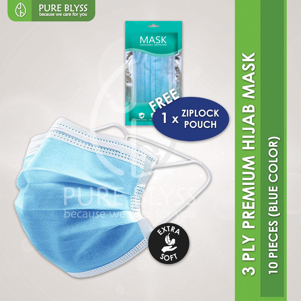 [Ready Stock] Pure Blyss PREMIUM HIJAB Mask 50pcs 10pcs Disposable BFE95 Face Mask Muslimah Woman Headloop Tudung Colour