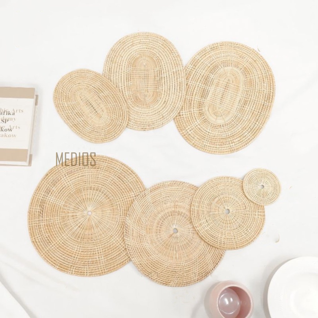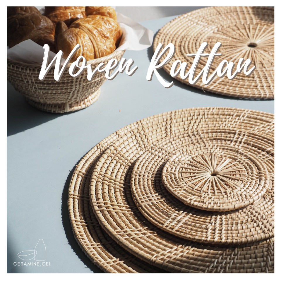 [Ready Stock] Rattan Placemat Coaster Lapik Pinggan Rotan Periuk Pad Heat Insulation Alas Meja Hiasan Dekorasi