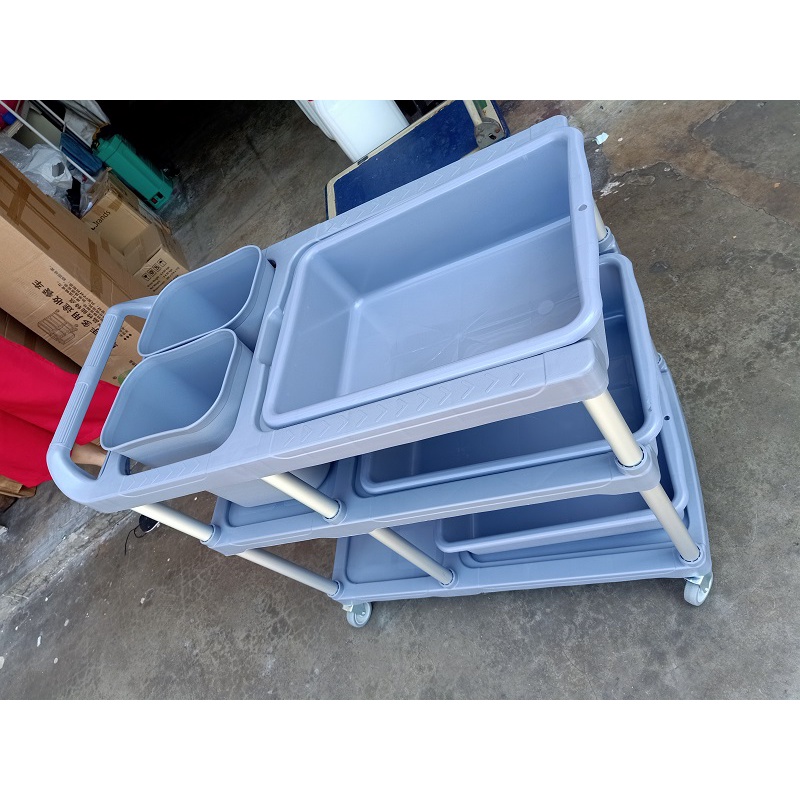 [Ready Stock] Restaurant Collecting Trolley come with 5 collecting Bucket - 3 Tier Trolley Cart