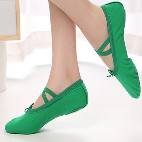 [Ready Stock] Size 23-44 Green Ballet Shoes Women Plus Size Dancing Shoes Kids for Girls Adults Canvas Ballerina Dancing Flats
