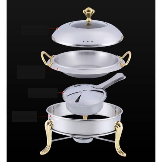 [Ready Stock]Stainless Steel Buffet Royal Gold Set 26cm Round Chafing Dish Serving Tray Catering Set