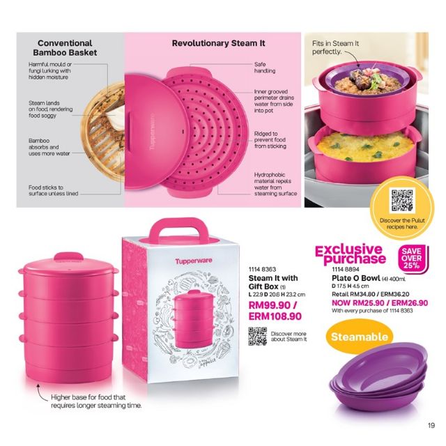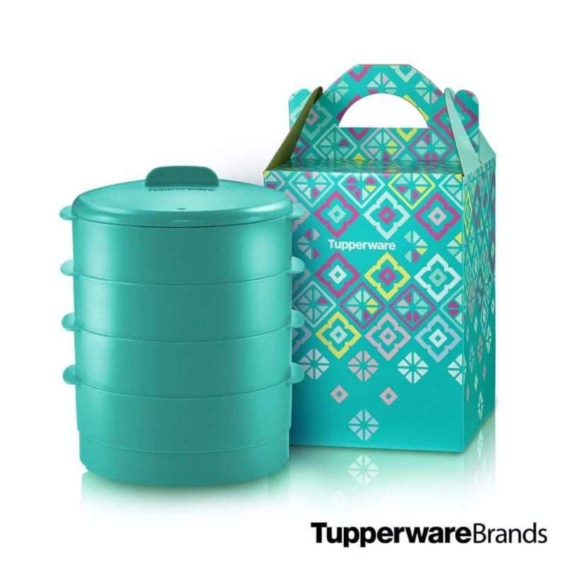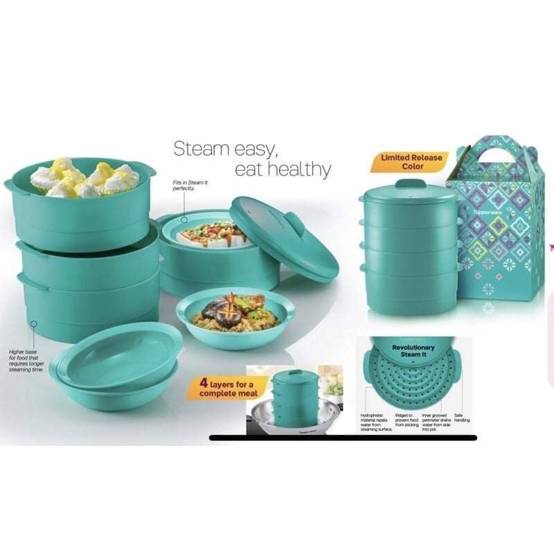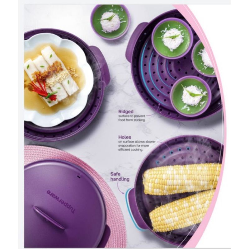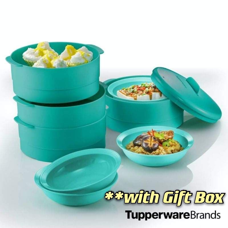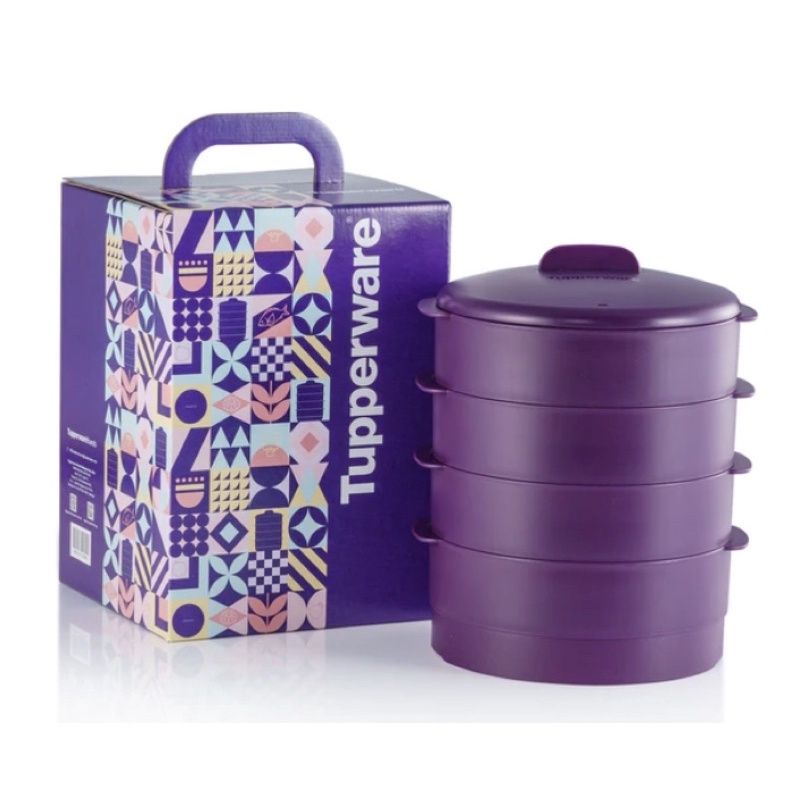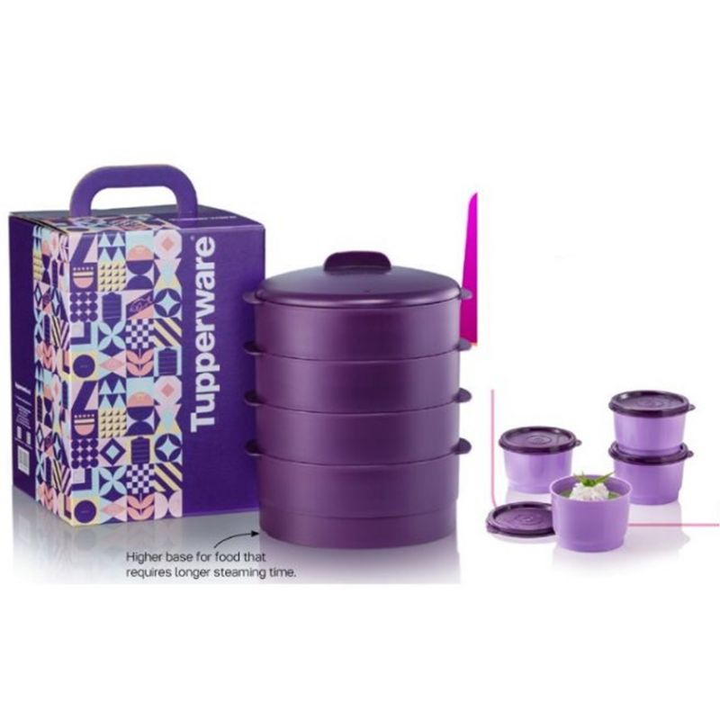READY STOCK【4 Tier + Gift Box】 Tupperware Steam It 4 Layer Limited Edition Dark Purple Steamable Snack Cup Plate O Bowl
