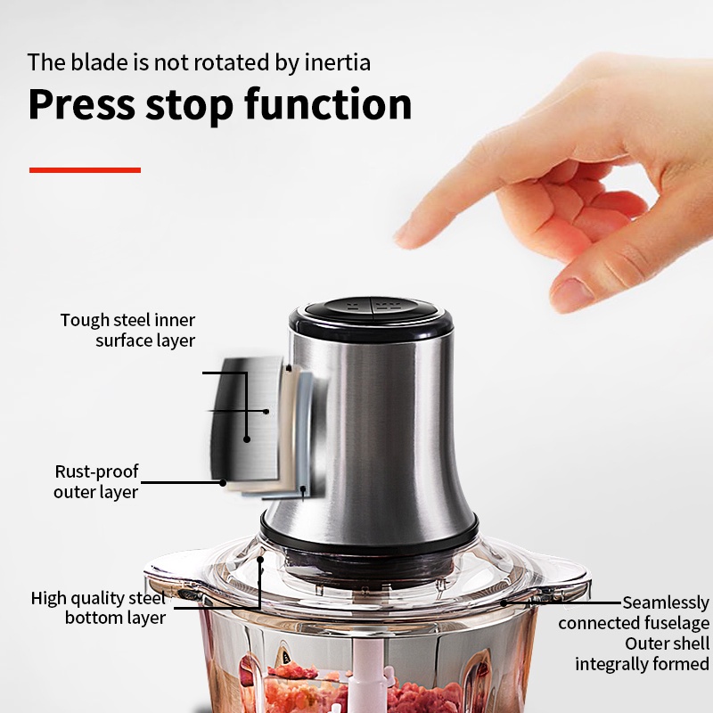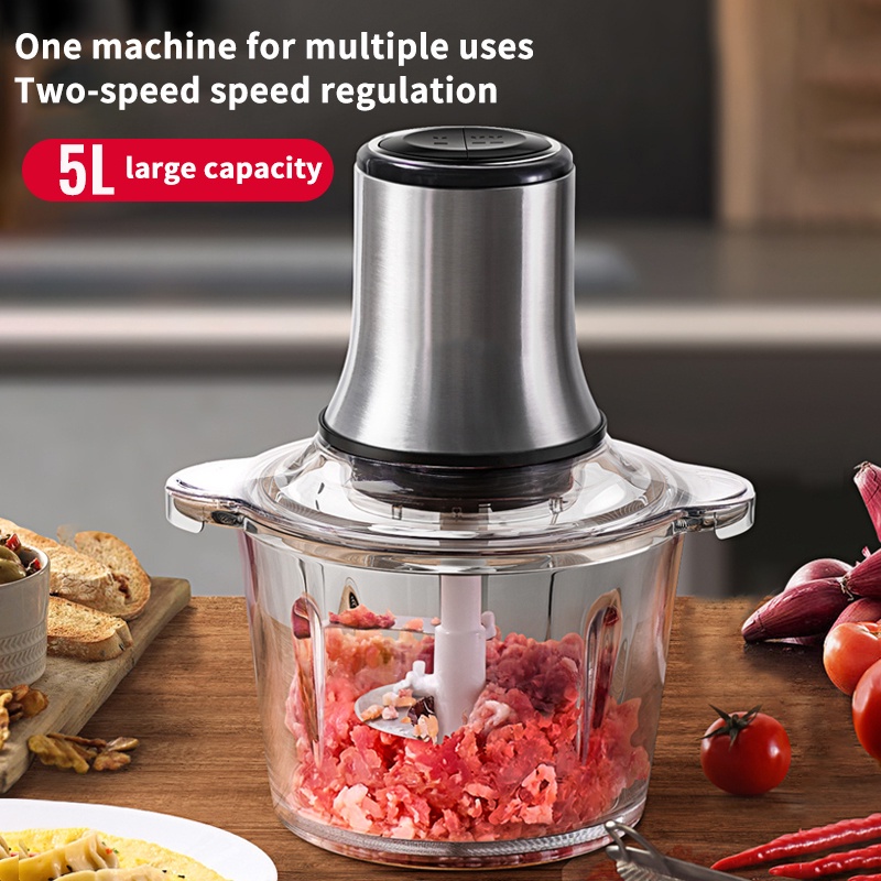 [Ready stock] 5L 304 stainless steel 4-blade meat grinder chopper food processor blender grinder blender