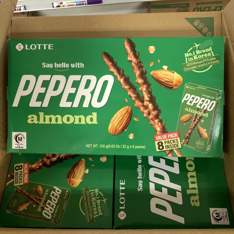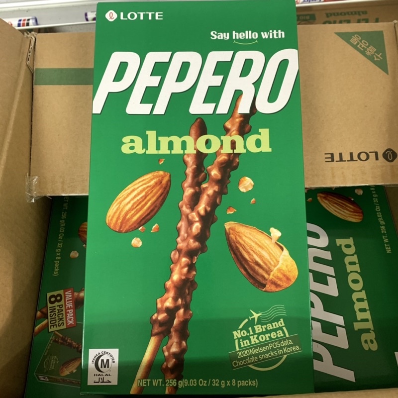 =Readystock= Lotte Pepero Almond Pepero Big Pack/Biskut Pepero Almond (32g x 8 small box) EXP: 13/4/2023