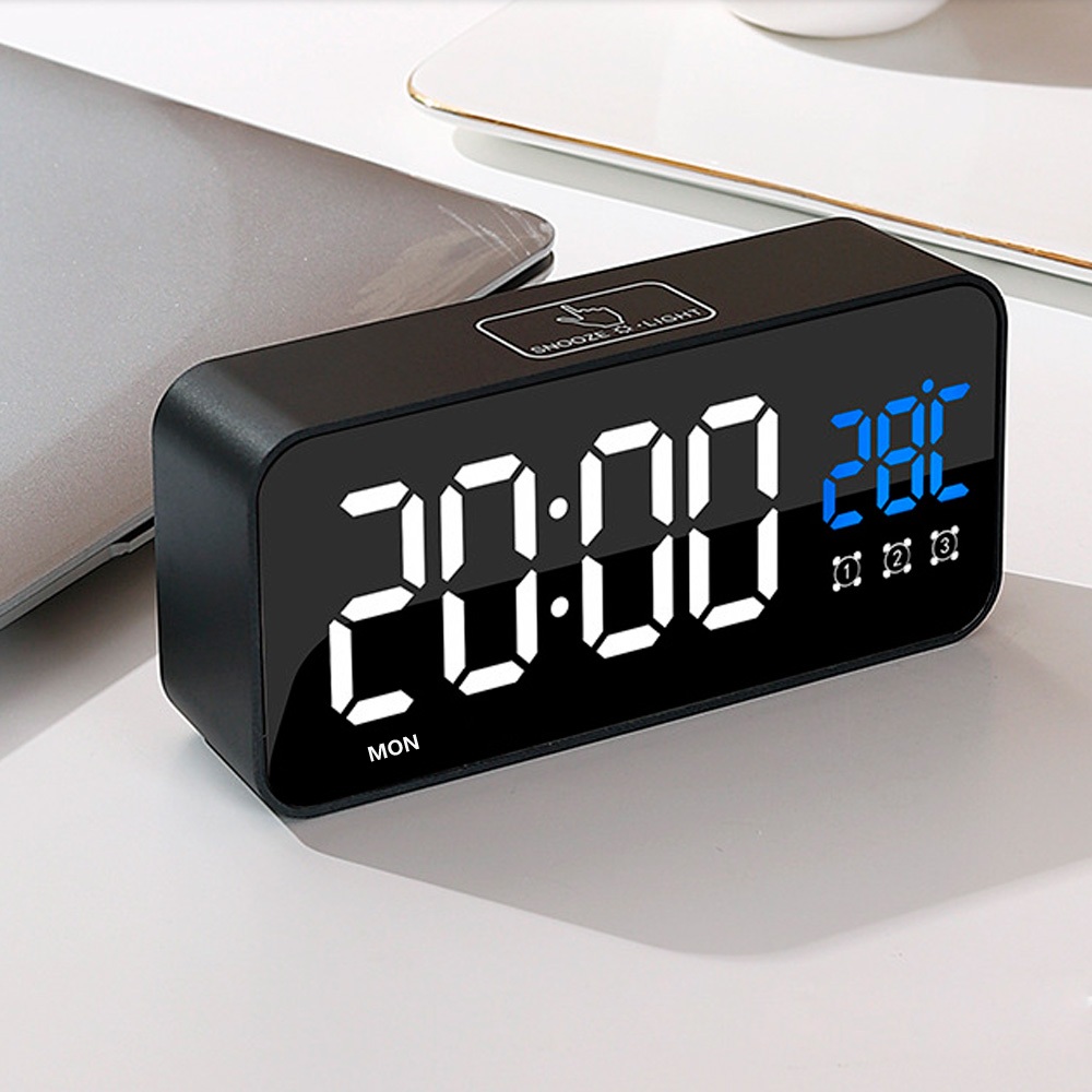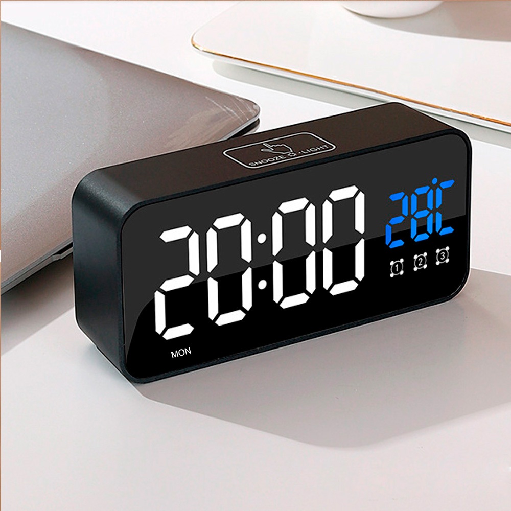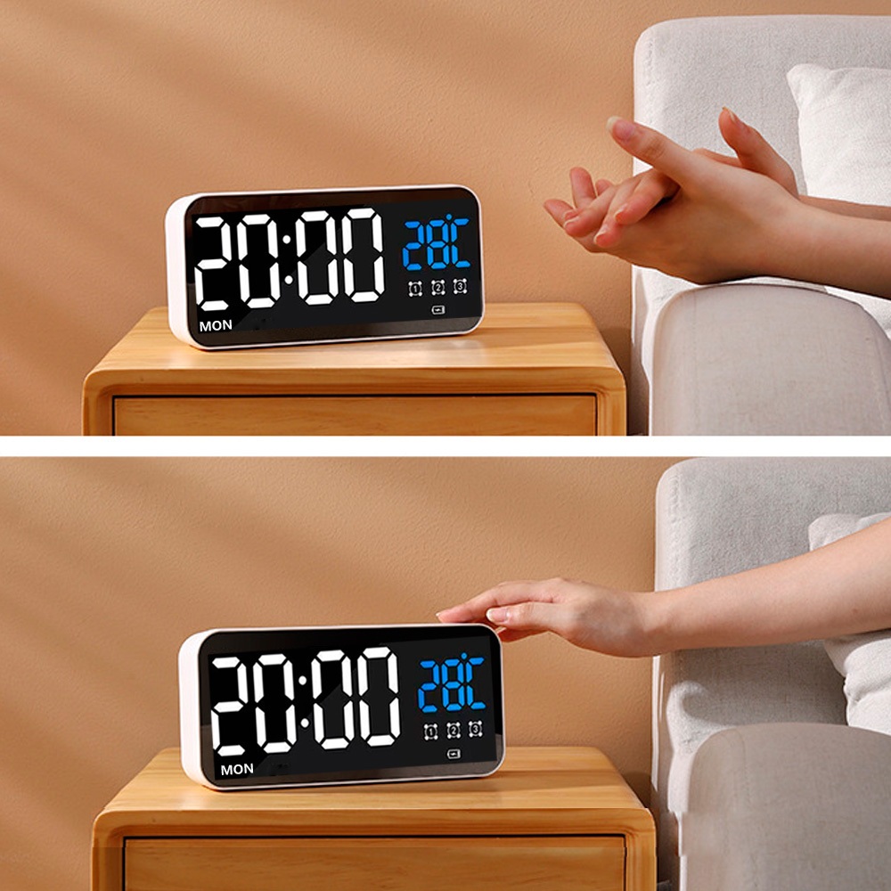 [ Rechargeable Clock Super Loud ] Portable Alarm Clock Battery Operated, Music for Kids, Travel, Students and Heavy Sleepers, 6-inch Mirror Screen, Voice-activated Backlight Table Digital Clocks