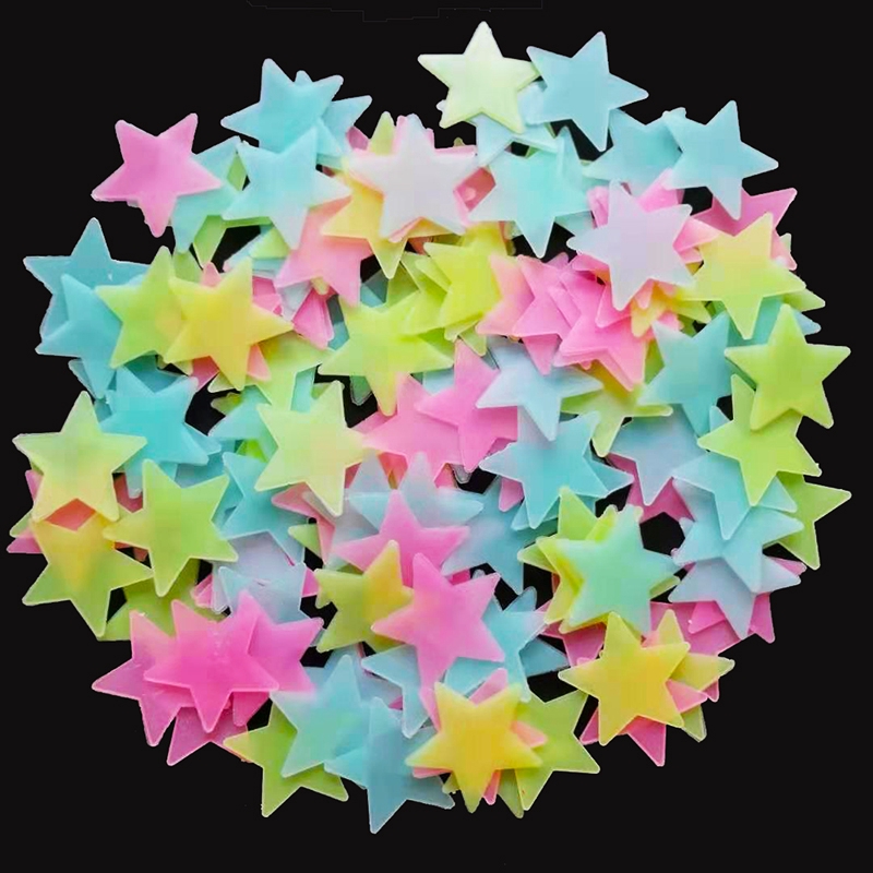 [Recommend] 3D Wall Sticker Stars Luminous Stickers Fluorescent Moon PVC 100pcs 3D Kids Room Decal Glow In The Dark