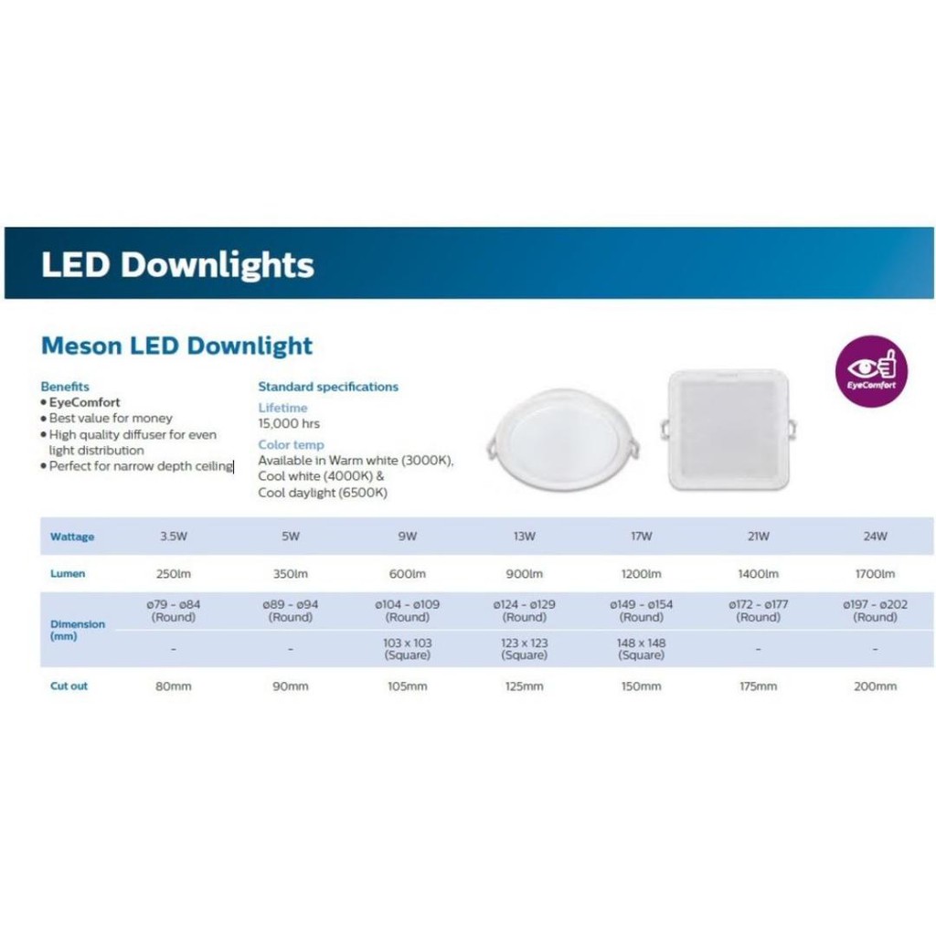 [Round] - 21W LED Downlight (MESON) (PHILIPS) (59469) (CUT OUT SIZE - 175MM)