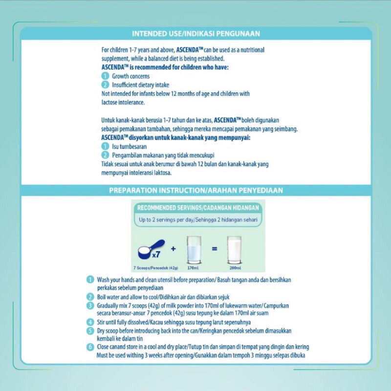 [SAMPLE PACKS][Exp: 23/5/2024] RM60.21 After 10% Rebate (Wyeth Ascenda 1-7 years -1kg (200g x 5 Boxes)