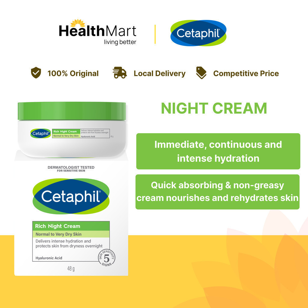 [SG] Cetaphil Face Rich Hydrating Night Cream with Hyaluronic Acid, 48g