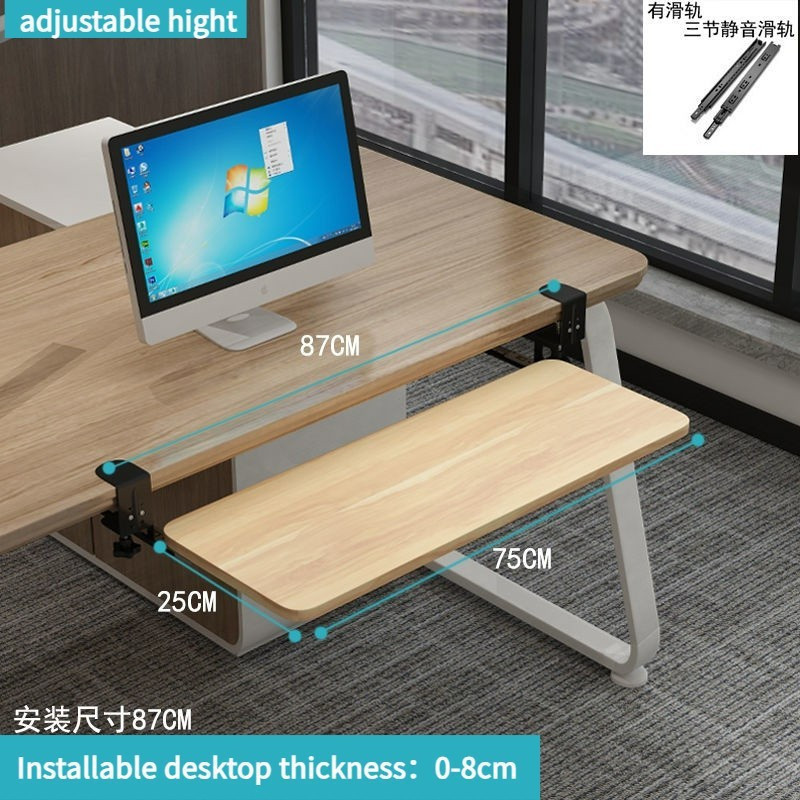 [SG stock][under desk keyboard tray]Computer Keyboard Bracket Rounded Wooden Tray Computer Table Accessories Thickened Todi Hoisting Slide 25691131378 KZIA 6O22