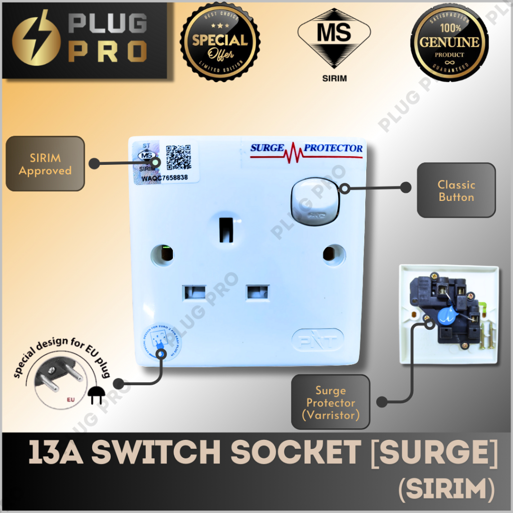 [SIRIM] 13A Switch Socket Outlet - Soket Plug 3 Pin Wall Socket