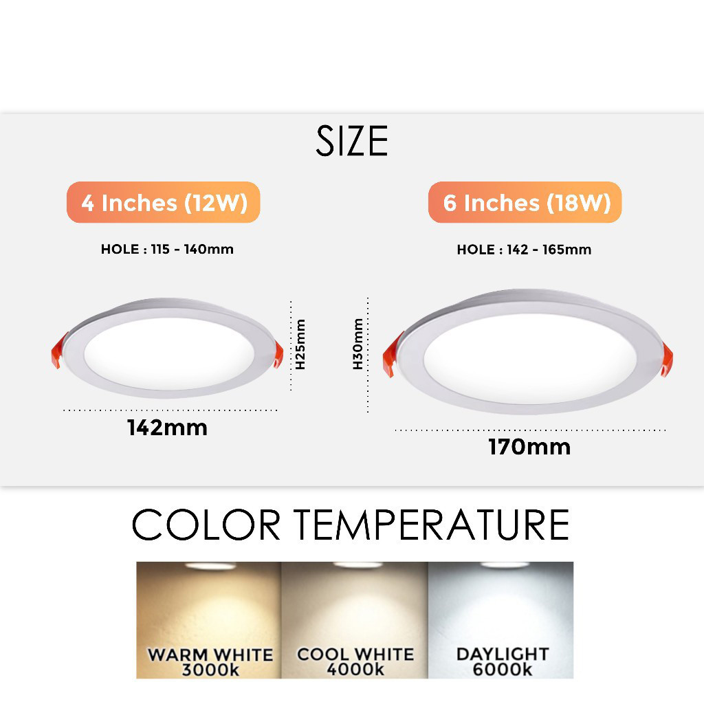 [SIRIM]15W/18W Round LED Downlight Recessed Light Lampu Bulat Siling 6500K DL with Adjustable