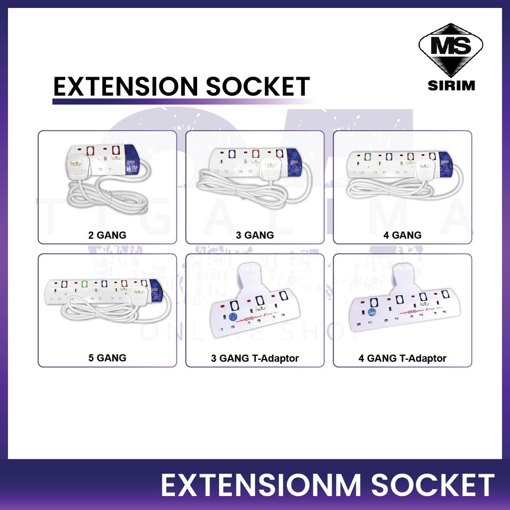 [SIRIM] 2M Trailing Extension Trailing Socket Extension Plug / Extension Socket Extension Wire Multiple Plug Adaptor