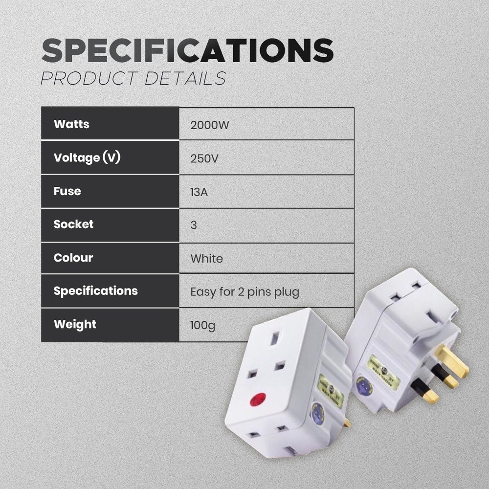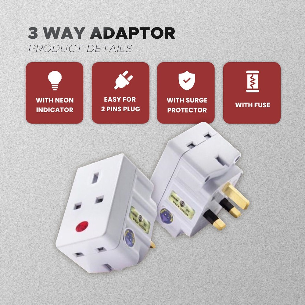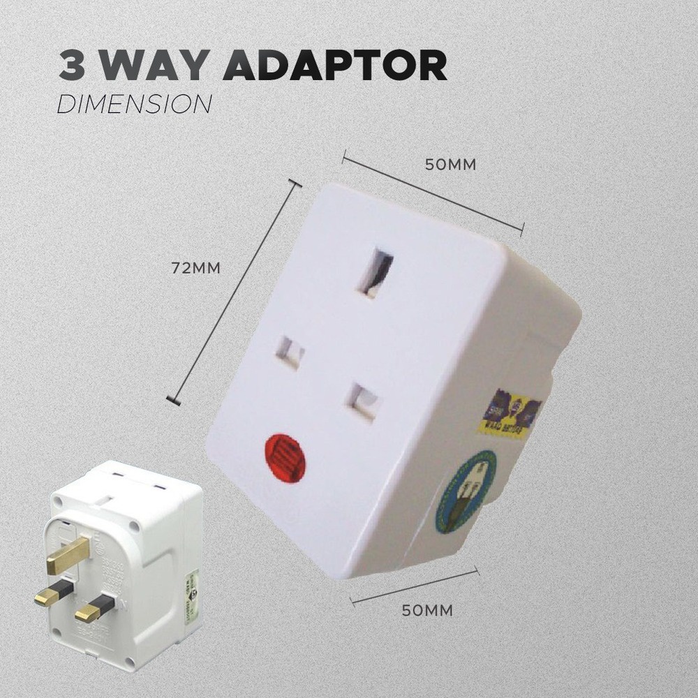 <SIRIM>3 WAY ADAPTOR 3 PIN UK PLUG MULTIPLE SOCKET ADAPTOR WITH NEON LIGHT INDICATOR