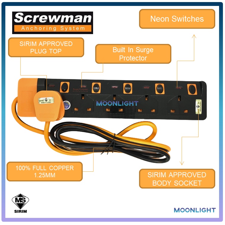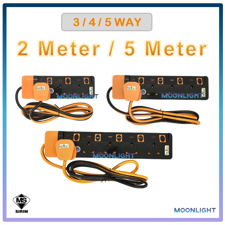 [SIRIM] 3000W 2M/5M Extension Plug Trailing Socket 3/4/5 Gang Way Wire Cable Extention Heavy Duty