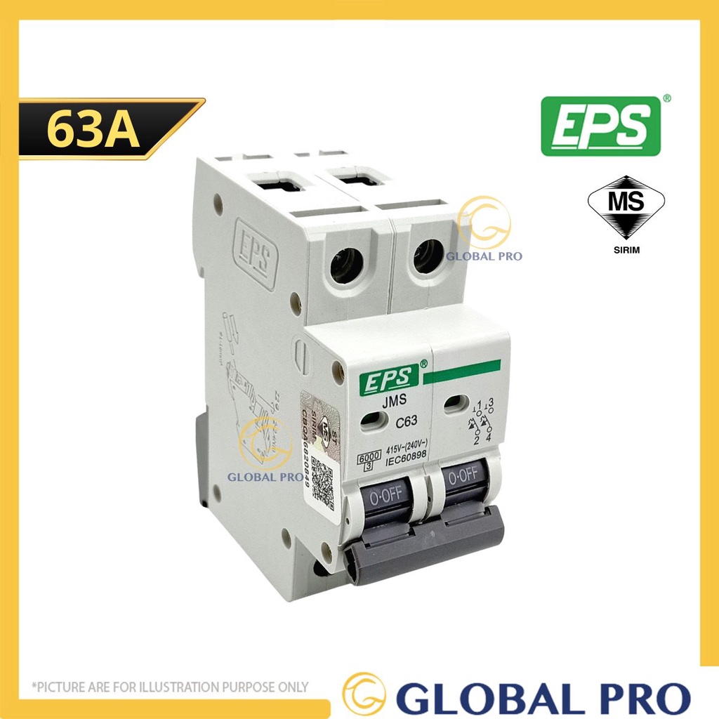 [SIRIM] EPS 2 POLE MCB Double Pole Miniature Circuit Breaker MCB DIN Rail Mount Circuit Breaker Kotak Suiz MCB Box Kotak