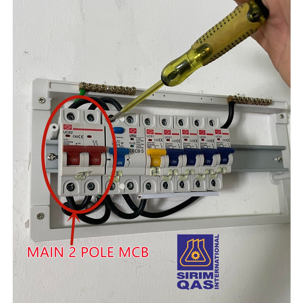 [SIRIM] MCB Single Phase UMS ISOLATOR 10A/20A/32A/63A 2POLE Miniature Circuit Breaker Pemutus Litar ELCB DB BOX ELEKTRIK
