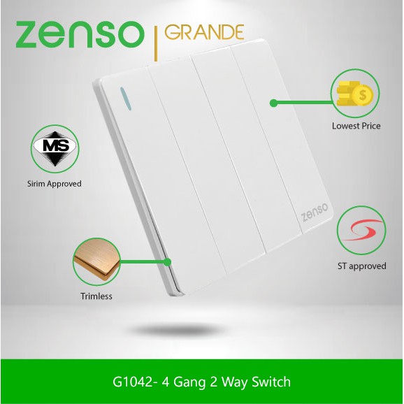 [SIRIM][Ready Stock] ZENSO Switch- Grande White Switches & Socket #1/2/3/4 Gang 20A 13A Suis Rumah Lampu