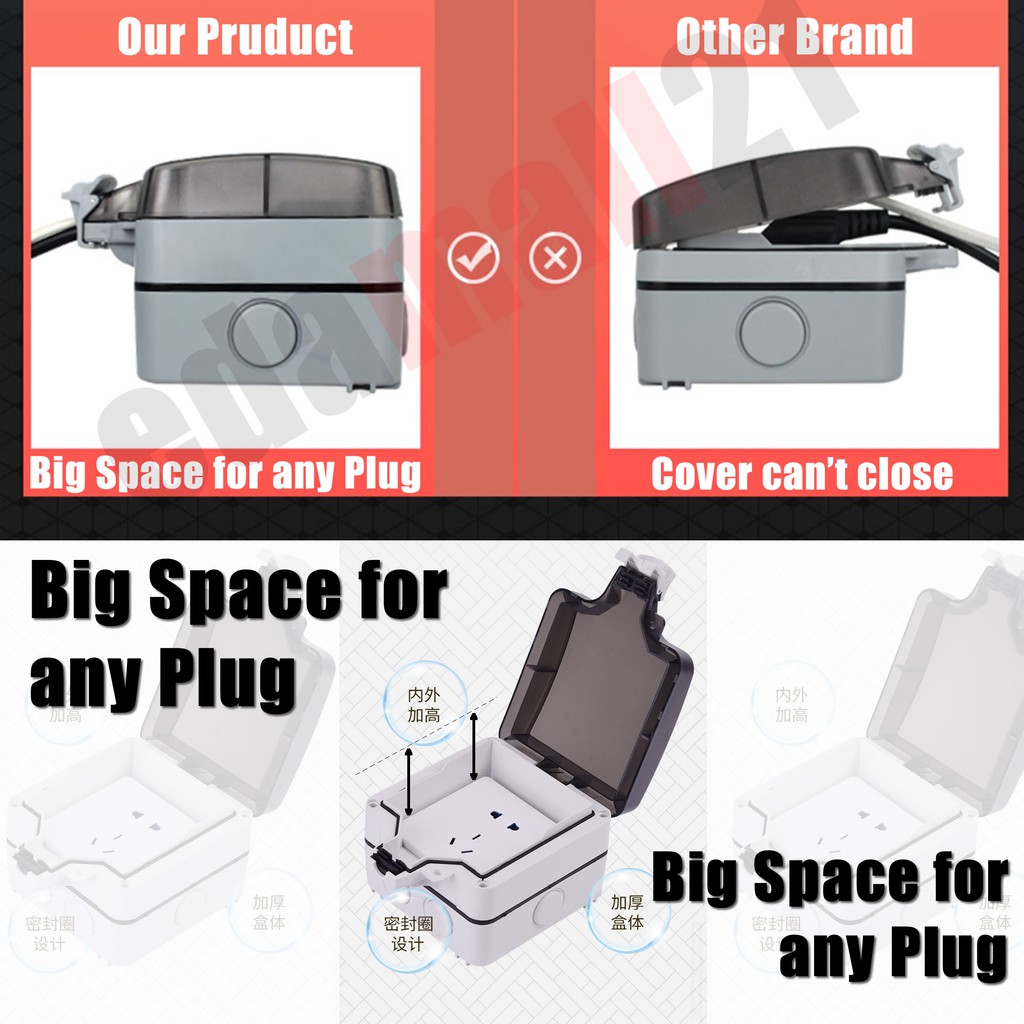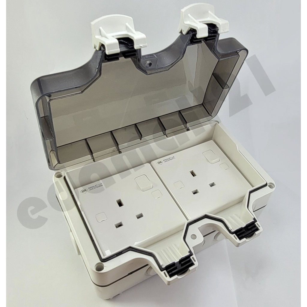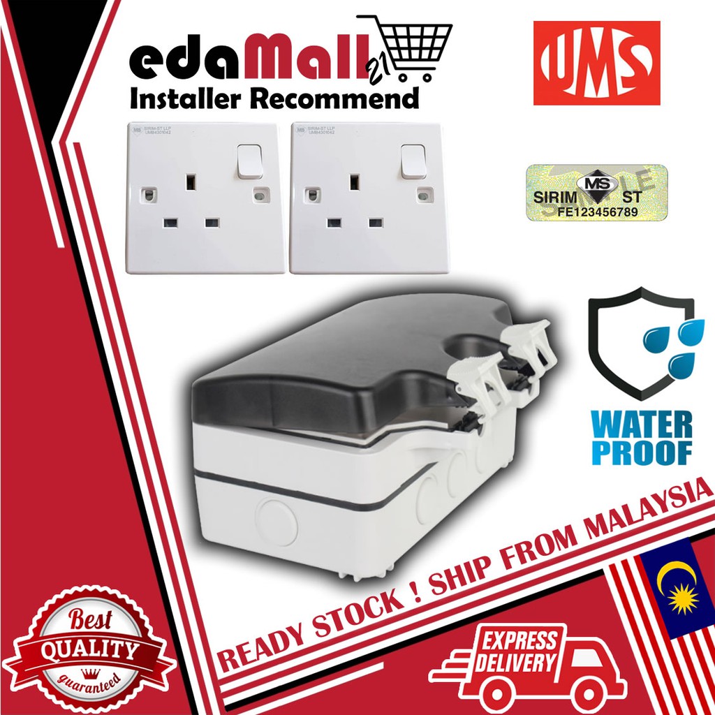 [SIRIM] UMS 13A Quality Waterproof Outdoor Double Plug Socket IP66 Weatherproof with 2 Gang Switch Socket