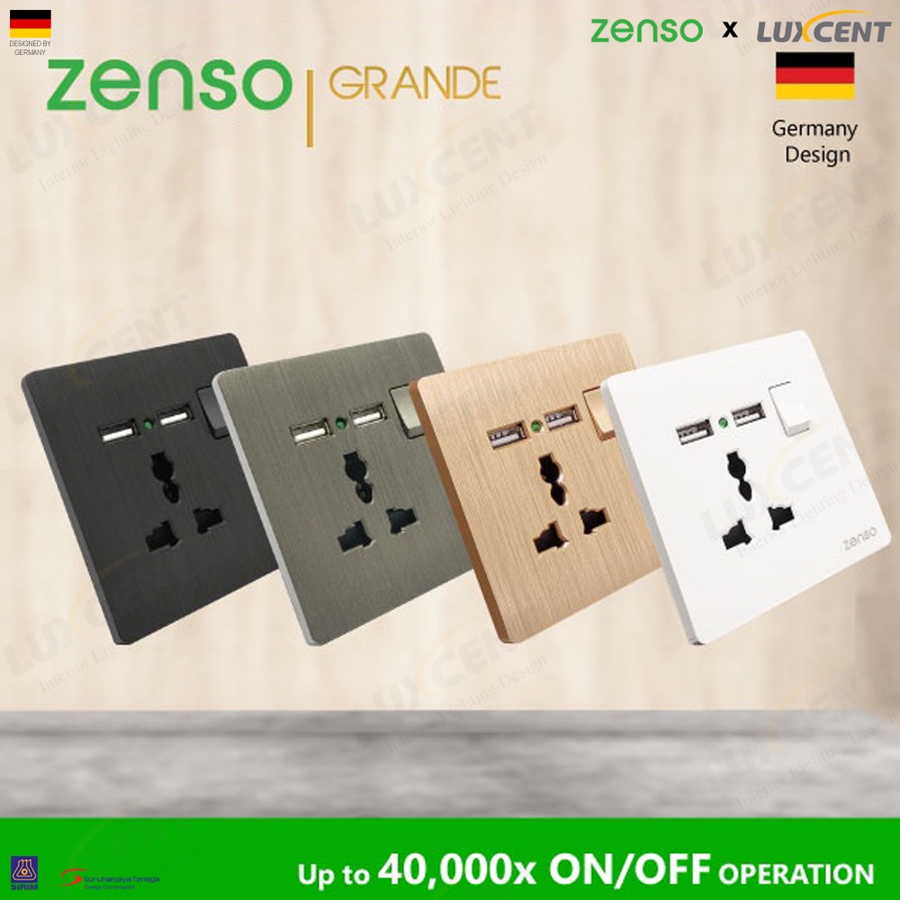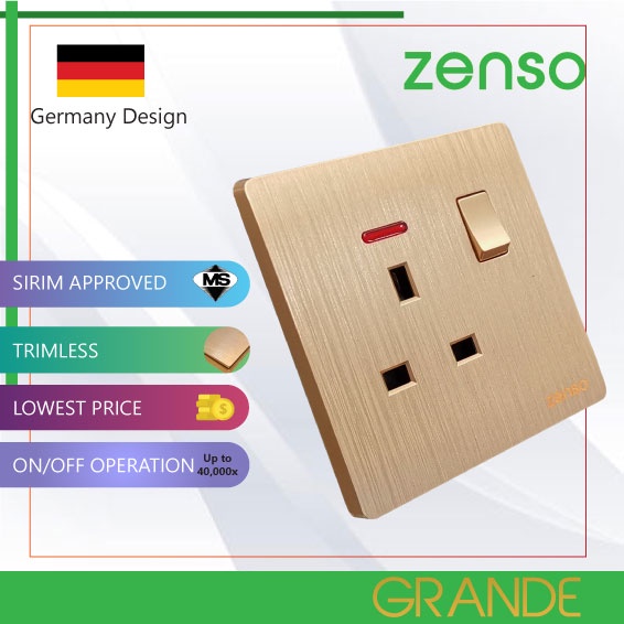 <SIRIM> ZENSO Grande Wall Switch & Socket Suis 20A 1/2/3/4 Gang 1/2 Way Doorbell Autogate Double Pole Flat Pin Universal