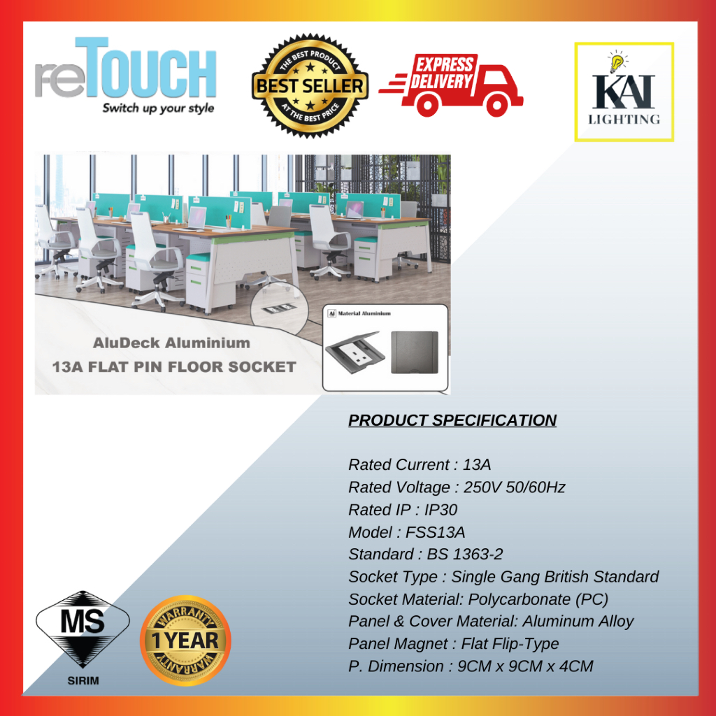 [SIRIM] Zenso/Retouch[NEW] 13A Floor Socket Pop Up Floor Socket with Flip Cover Stainless Steel