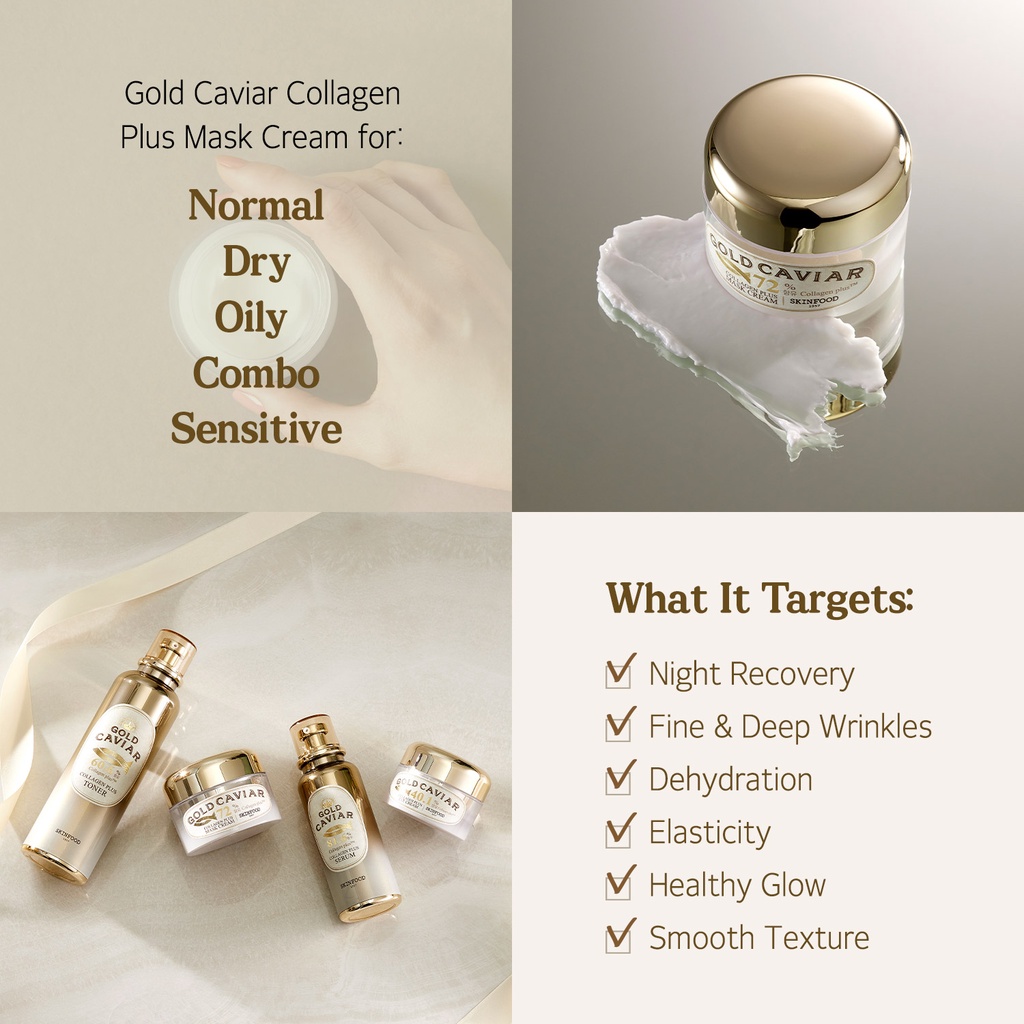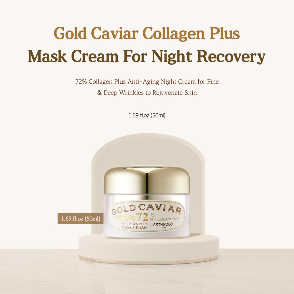 [SKINFOOD Official] Gold Caviar Collagen Plus Mask Cream 50g / 72% Collagen Plus Night Cream for Deep Wrinkle / Deep Hydrating Elastic Cream with Collagen & Gold