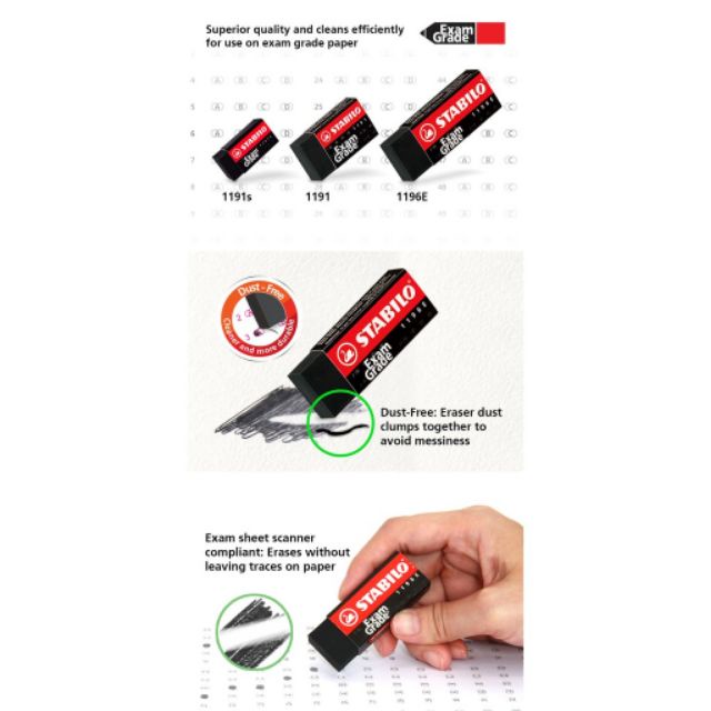 [ST-GR MY] Stabilo Eraser / Pemadam Exam Grade 1196E Stabilo Dust Free Eraser With Box (10pcs/Box) Pemadam Alat Tulis