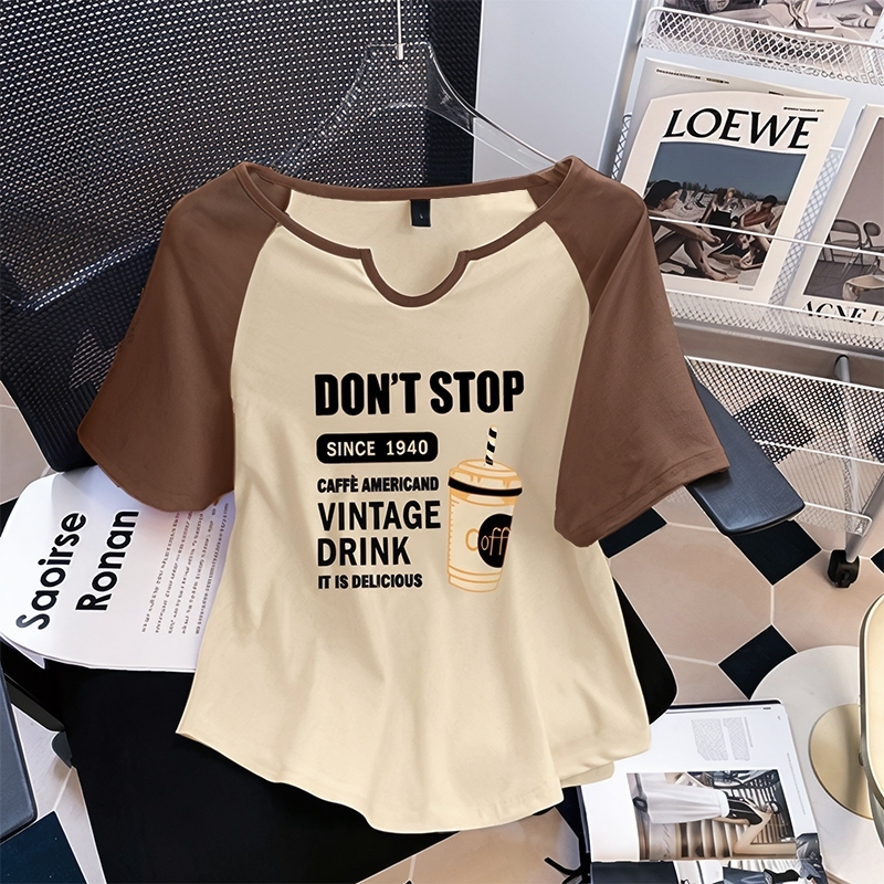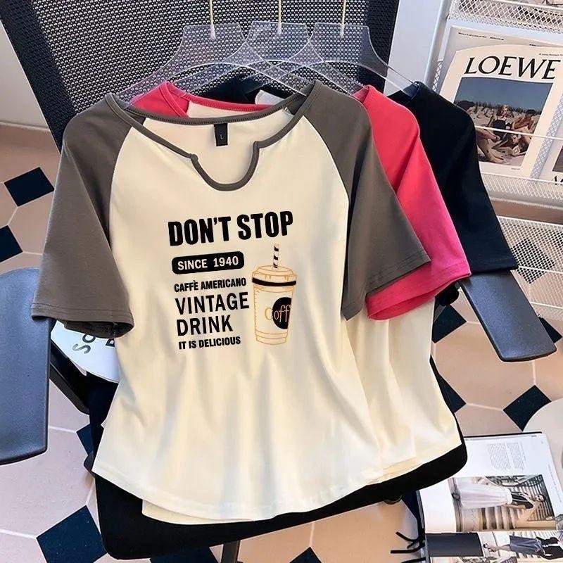 [Saiz Besar] (45-150kg) Baju T Lengan Pendek Warna Penyambungan Baju T Bersaiz Besar Cetak Leher Bulat Baju T Raglan