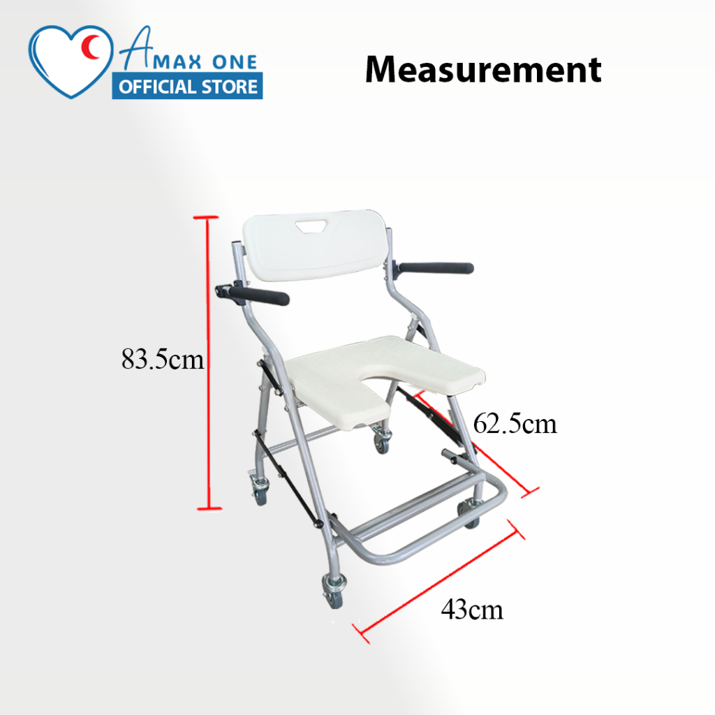 [Same Day Delivery] Aluminum Shower Wheelchair with Armrest and Wheel - 16 Inches