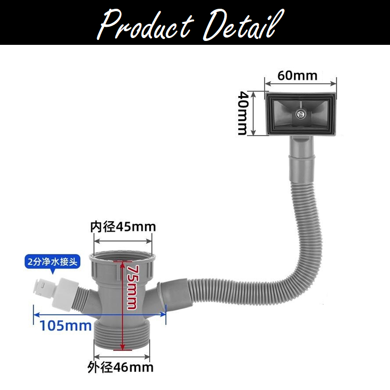 [Series: 1900] Kitchen Sink Waste Drain Pipe Accessories Overflow Tee Connector Y Connector