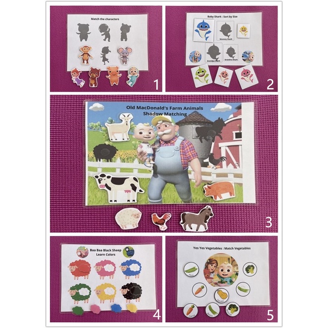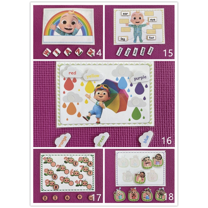 [Set-Cocomelon] Laminated Quiet Book | Montessori Early Learning Busy Book for Kids