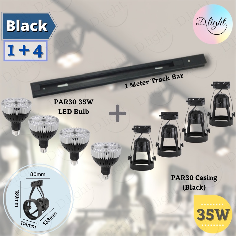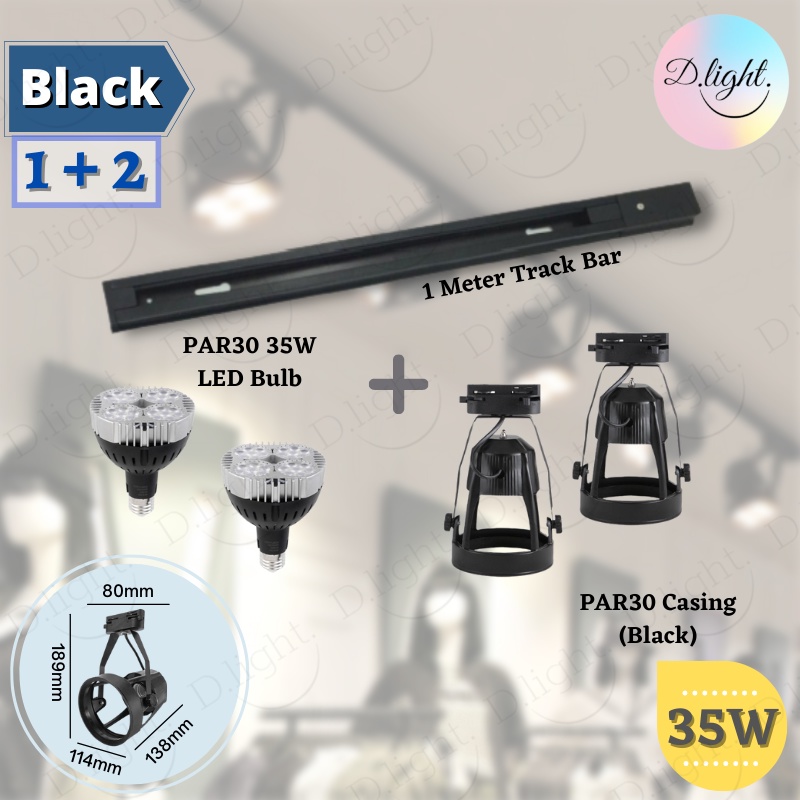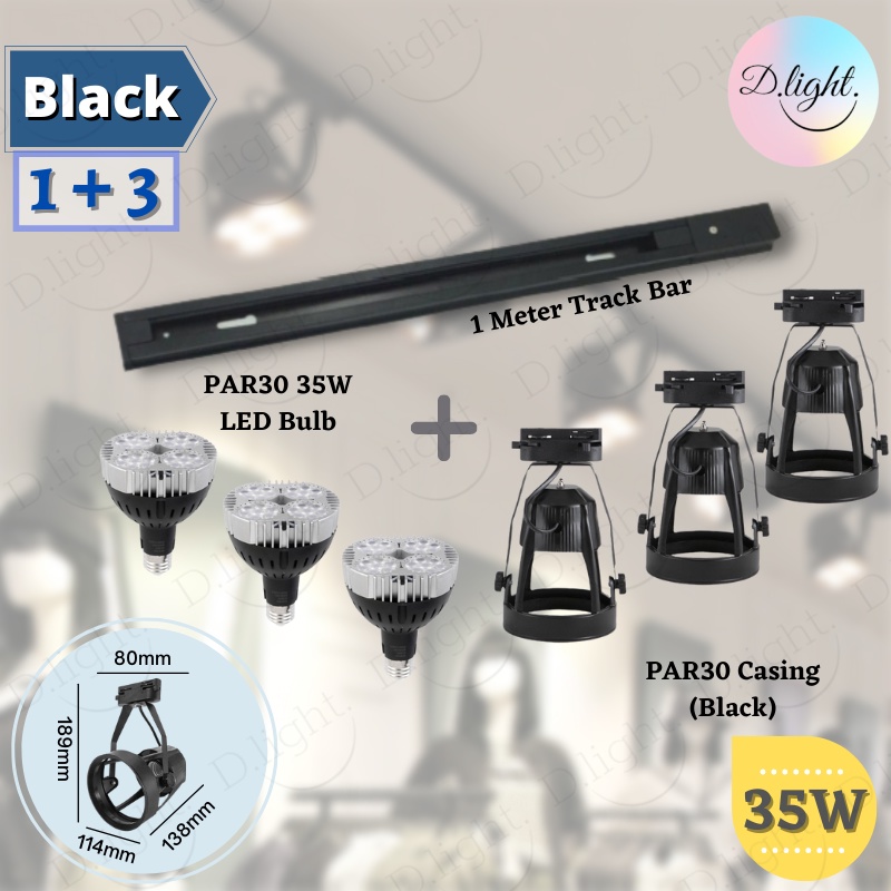 [Set] LED PAR30 TRACK LIGHT CASING WITH PAR30 35W BULB + 1M RAIL TRACK LIGHTING Lampu CEILING Trek Siling Mentol