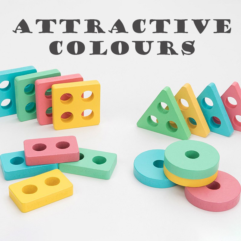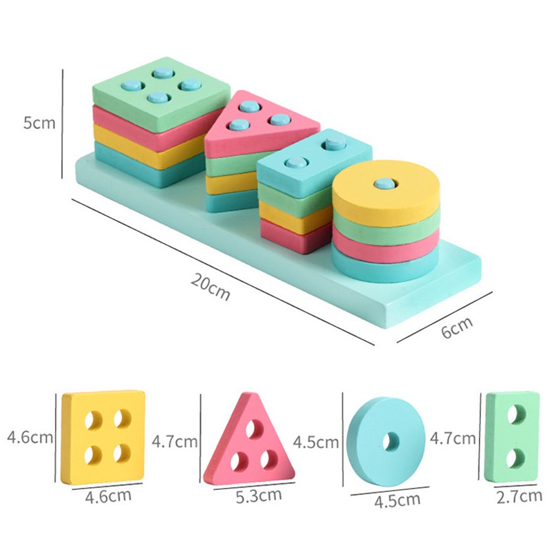 Wooden Shape Stacking Toy | Geometry Pillar Matching Blocks | Montessori Educational | Kids Training