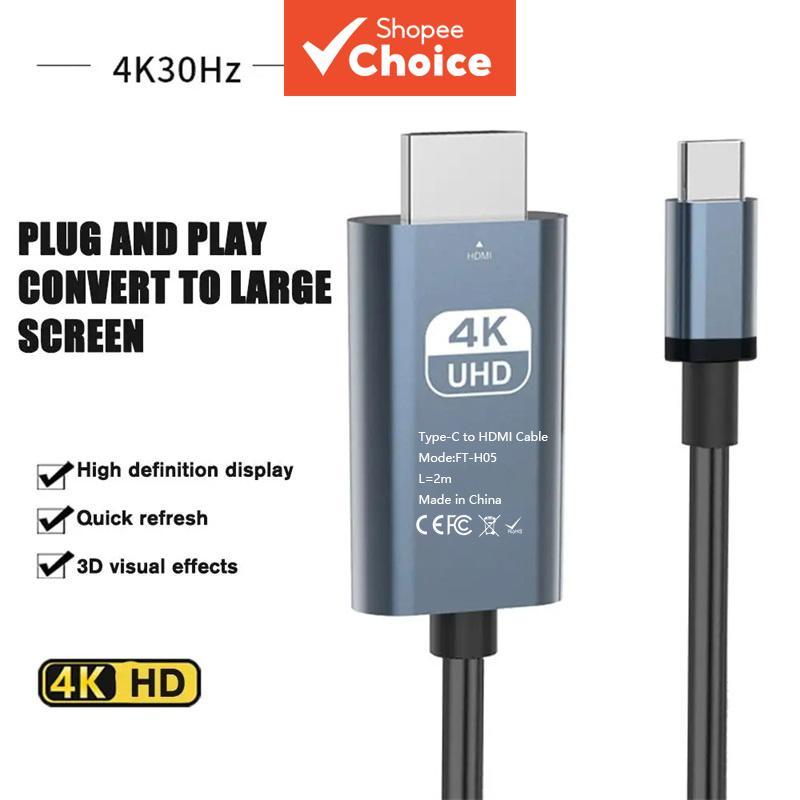 [Shopee Choice] Type C To HDMI Cable 4K 30Hz USB C to HDTV Projection Screen Cable for PC Samsung