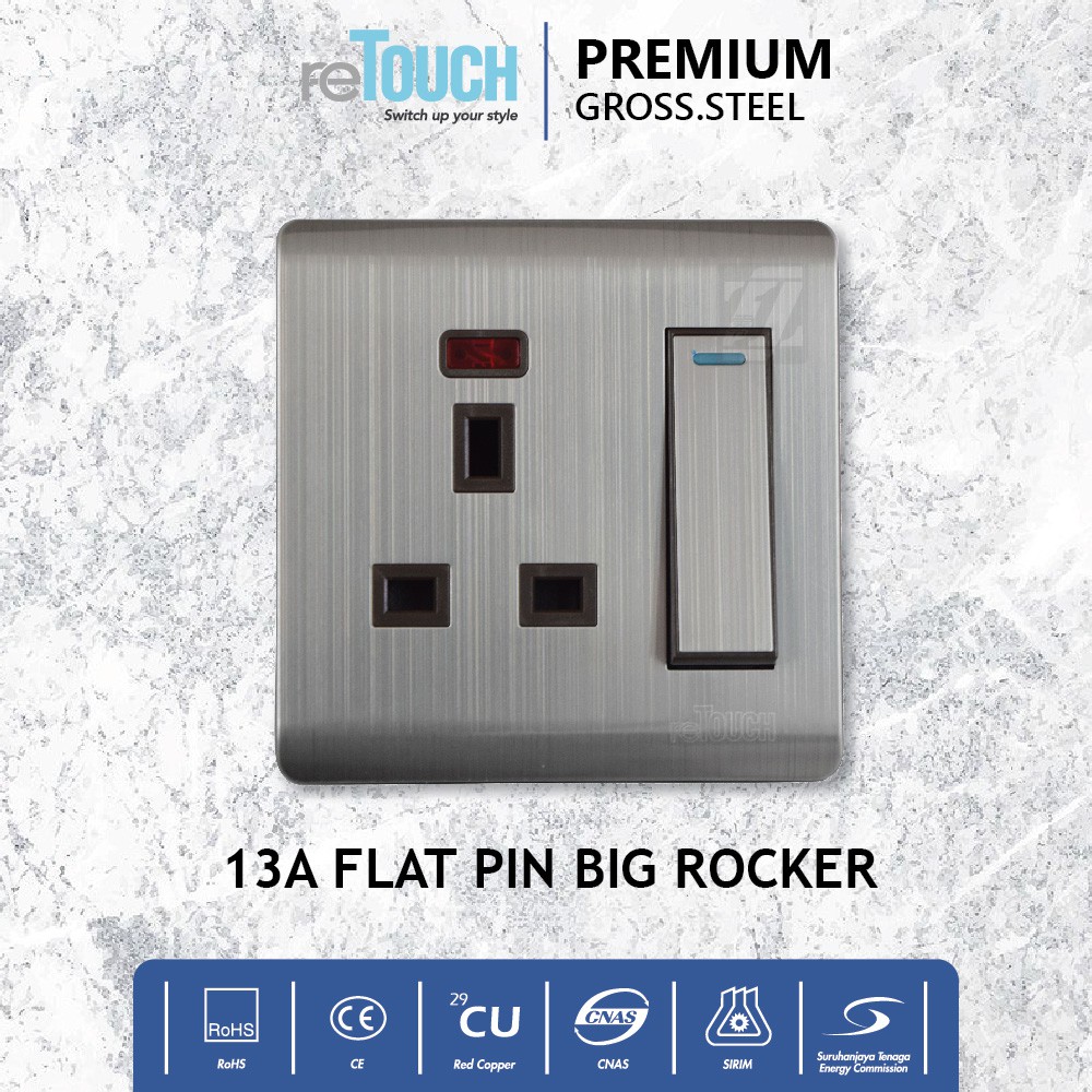 [Sirim] Retouch Premium Gross Steel Aluminium Socket 3Pin 13A, 13A Big, 13A Universal, 15A Round Pin Wall Switch Plug