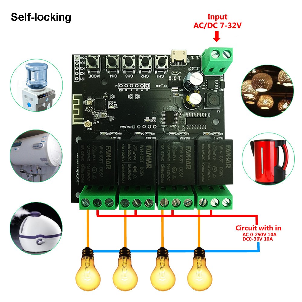 [Smart Life App] 4CH USB DC 7 32V WiFi Switch Wireless Relay Module Autogate APP Auto Gate Control