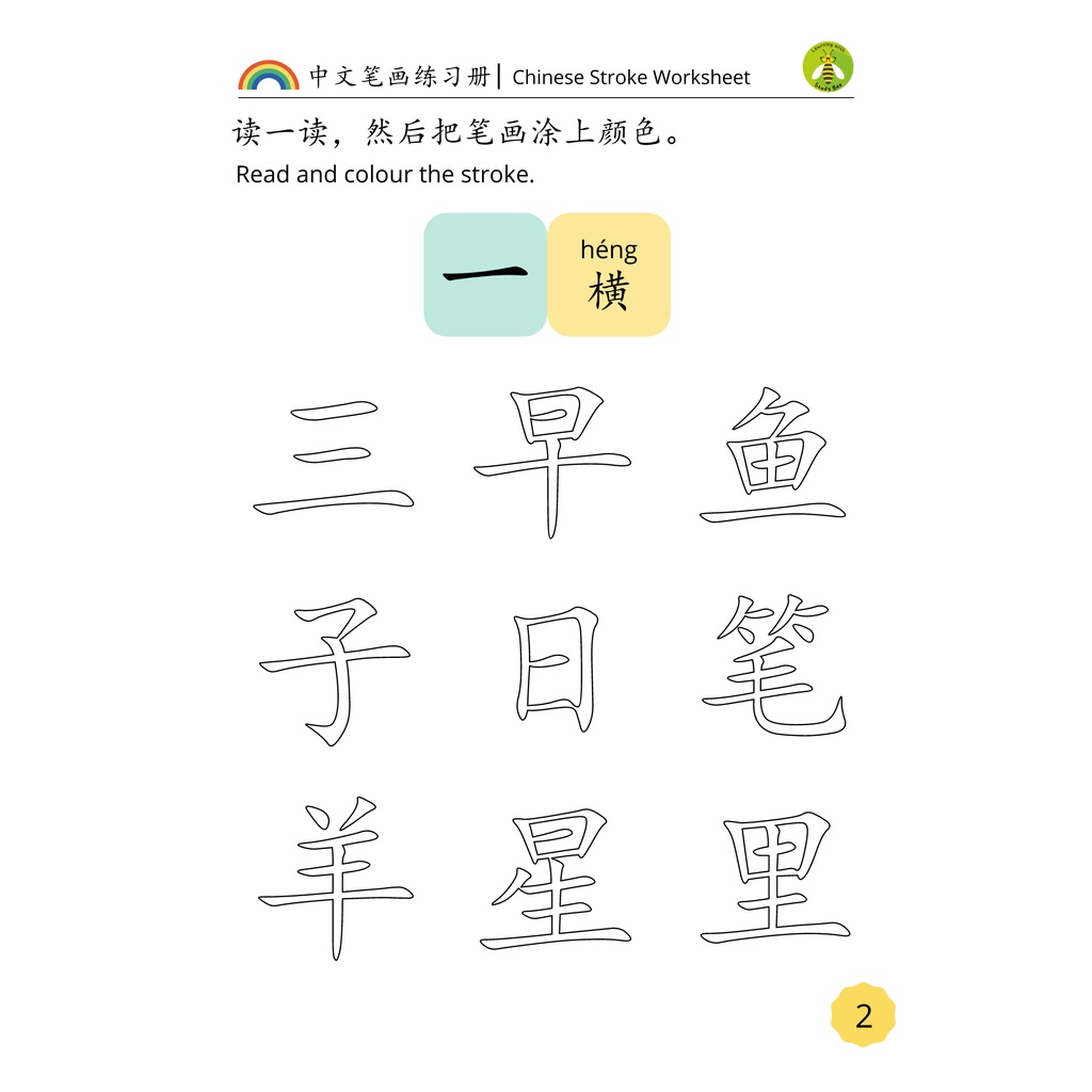 [PDF Link] Chinese Stroke Worksheet (Colouring & Writing) 32 chinese strokes | 中文笔画练习册 (涂色、练笔)32个笔画