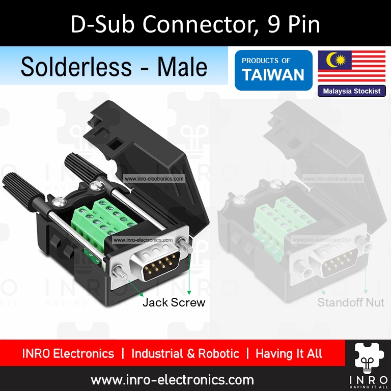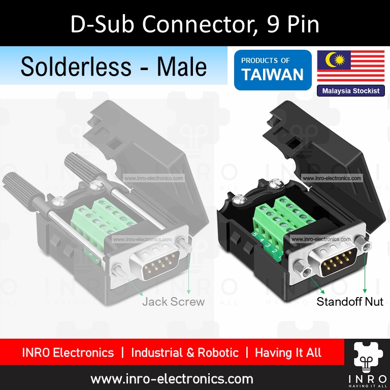 [Solderless] 9P Male / Female DB9 D-Sub Solderless Connector, 9 Pin Serial Port Dsub, RS-232 RS232 RS485 RS422 Connector