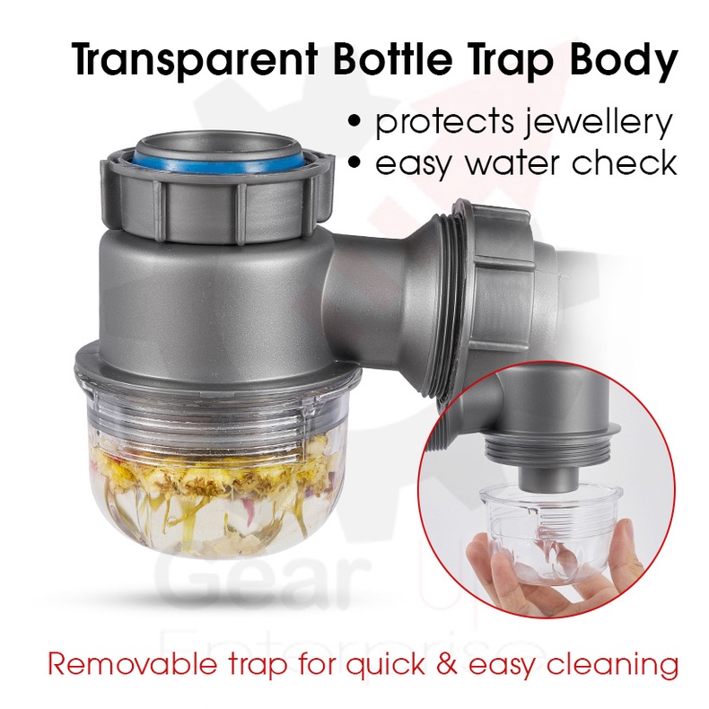 [Space Saving] Sink Drain Waste Pipe Kit with Transparent Waste Trap for Single or Double
